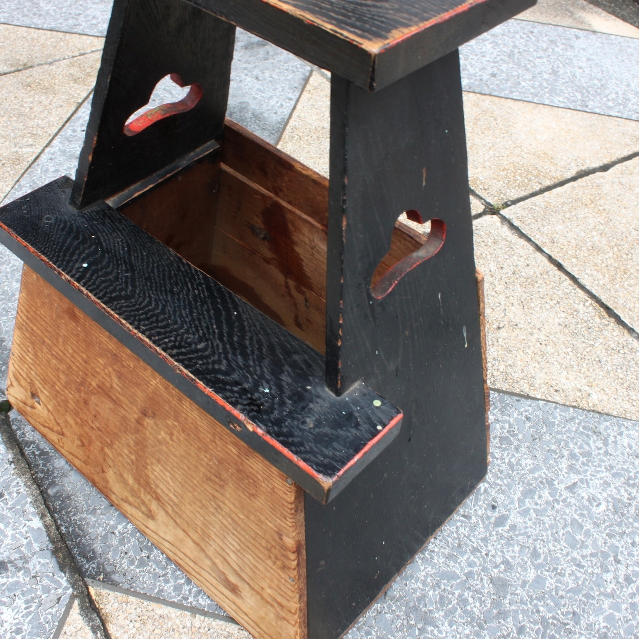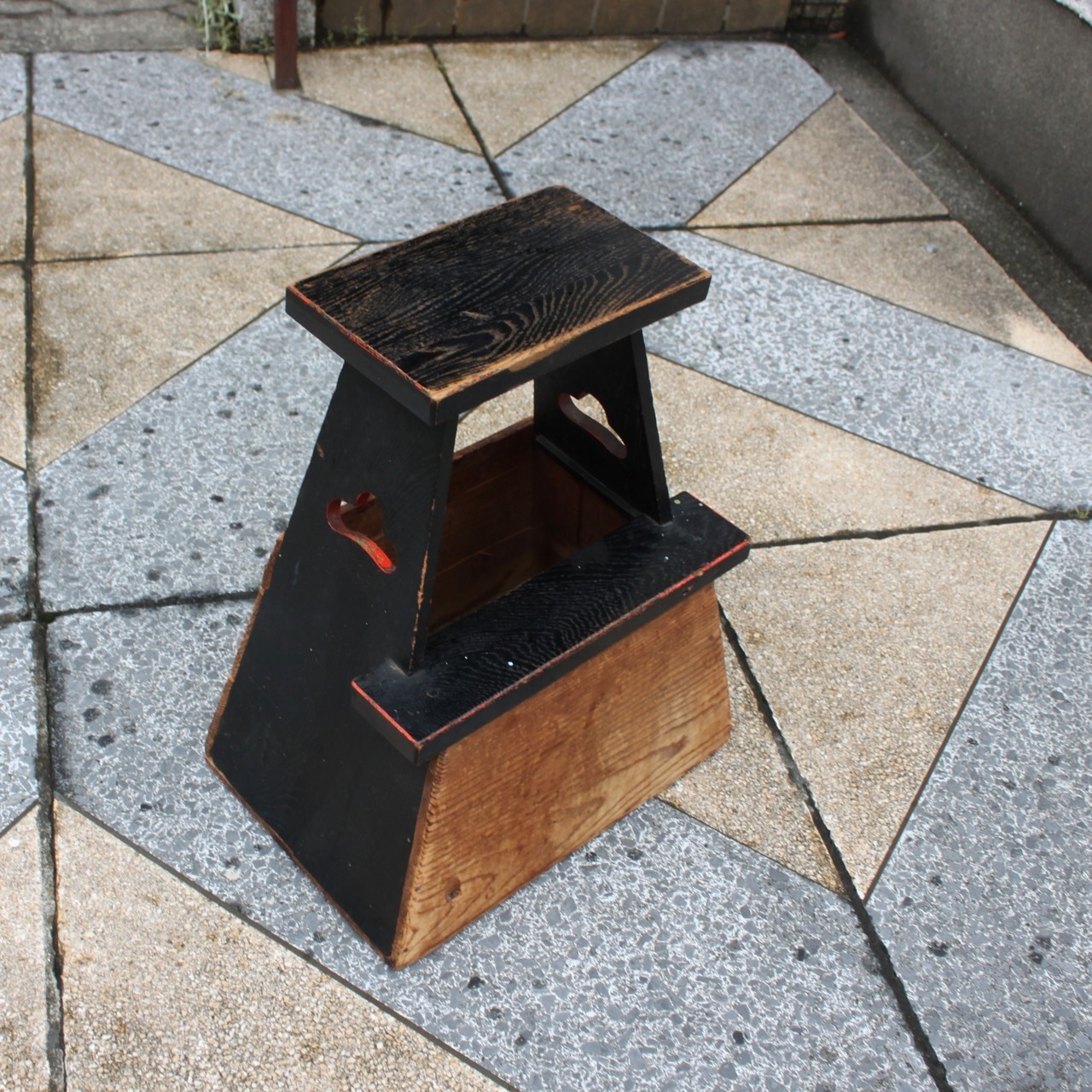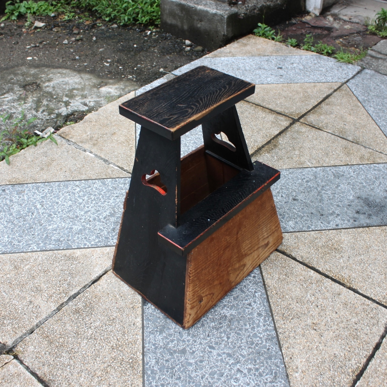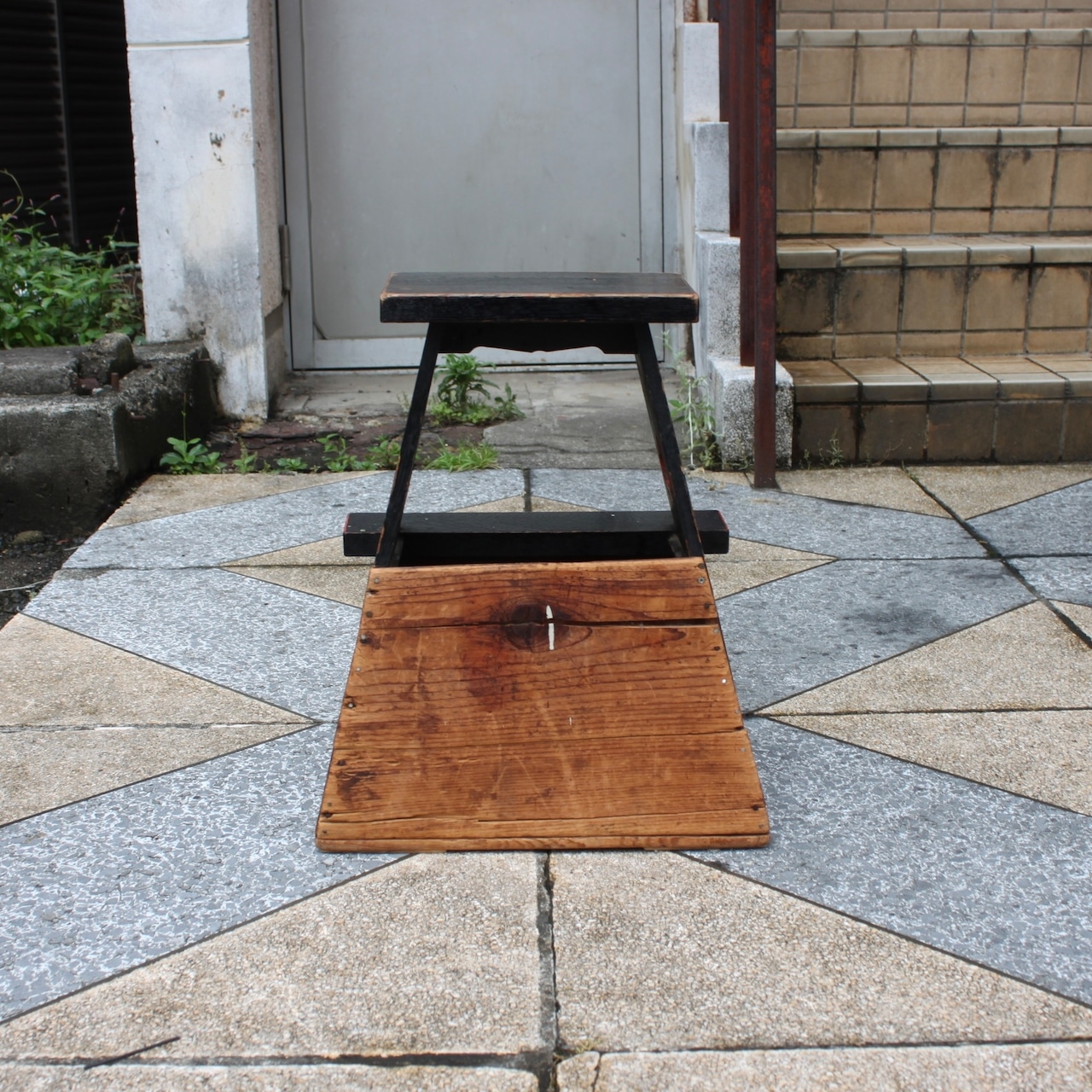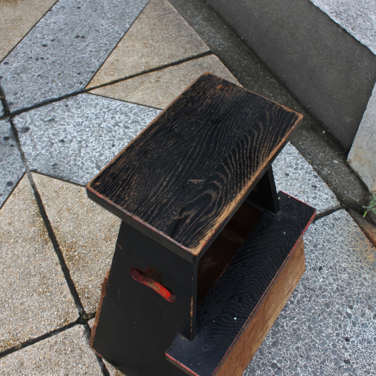 正直、現代においてこのサイズの踏み台を使用する機会ってあんまりないのかもしれませんが、スツール的な活用方法もありますので古家具好きな方にお届けできればと思っています。