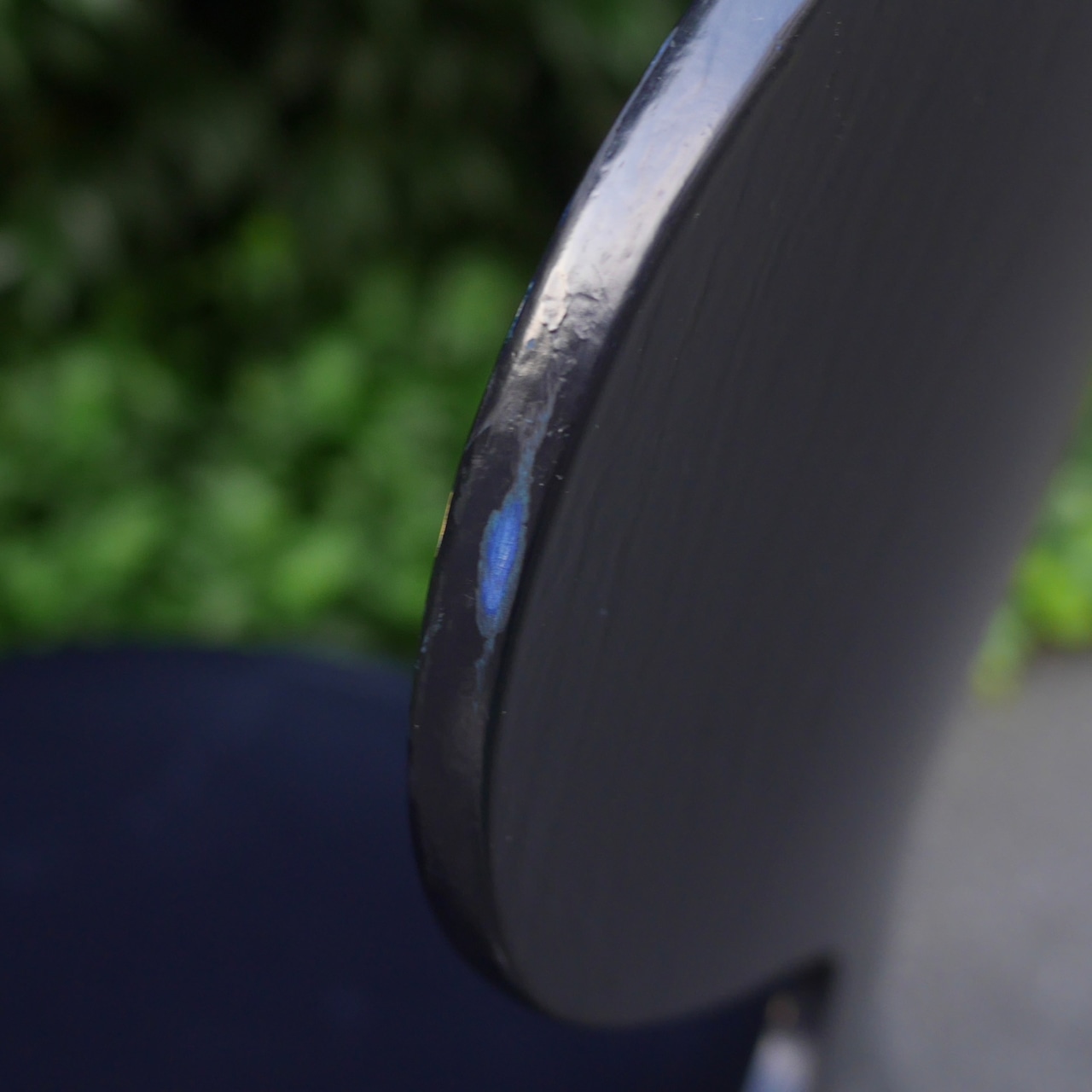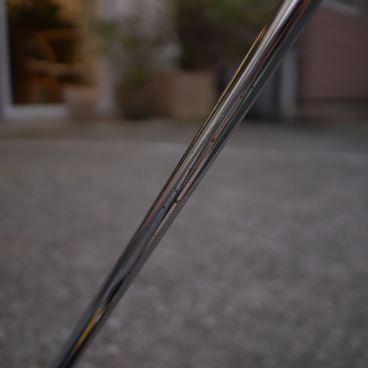 ・キズ・スレ・一部表面の剥がれ・脚部にクモリ・小さなサビ等々、使用/経年によるダメージが散見されます。