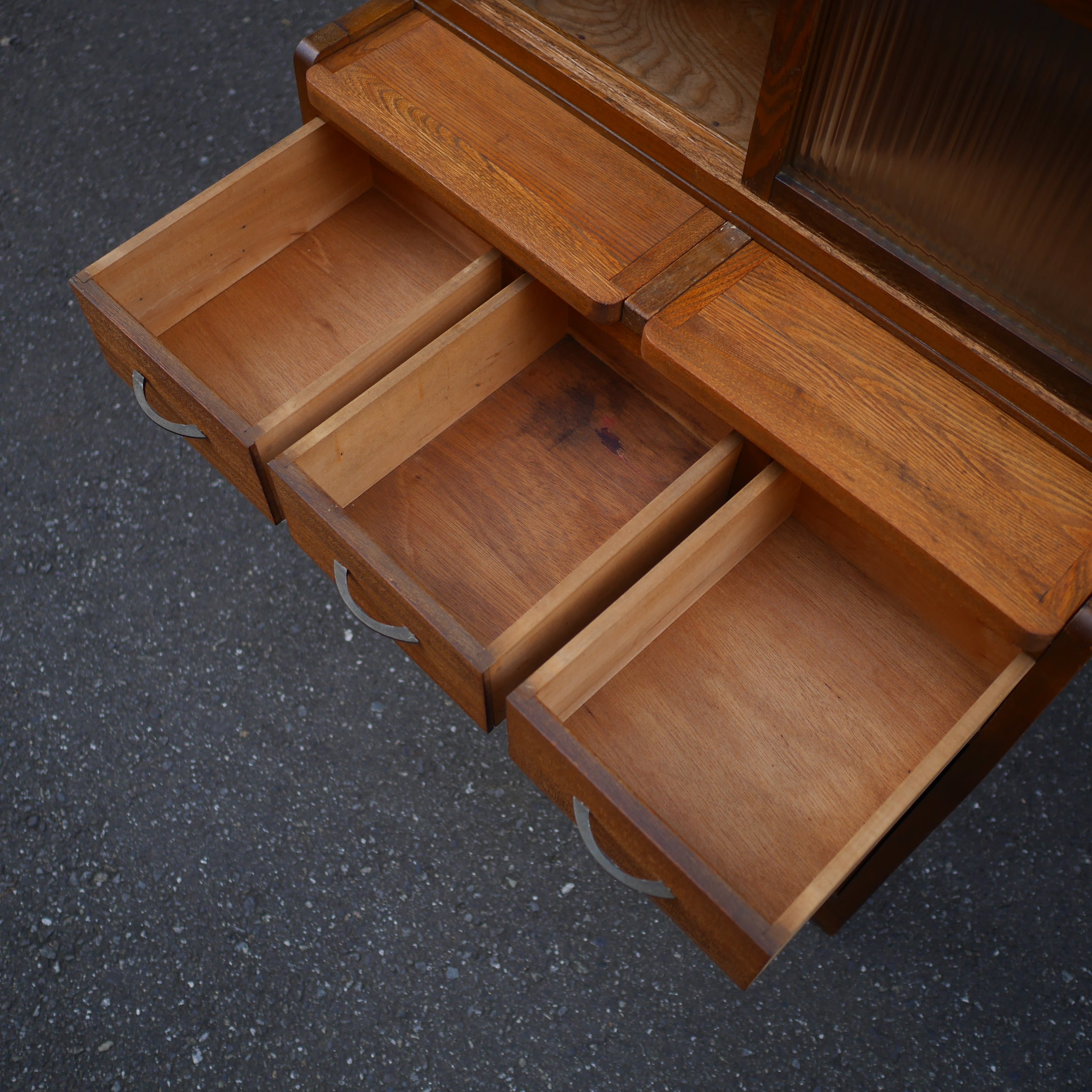 中央の引出と下部の引戸は突板が使用され、経年によりダメージが目立っていたので