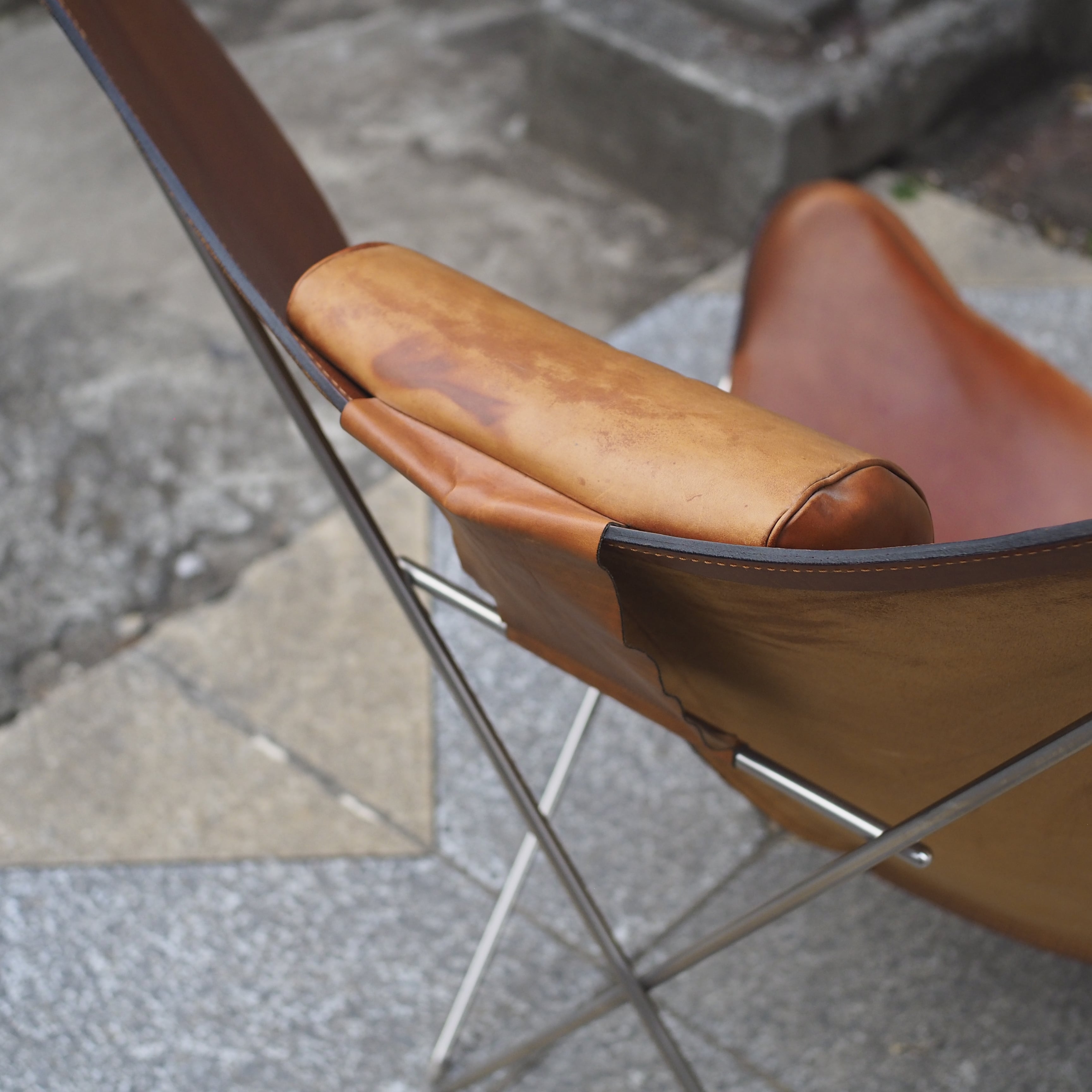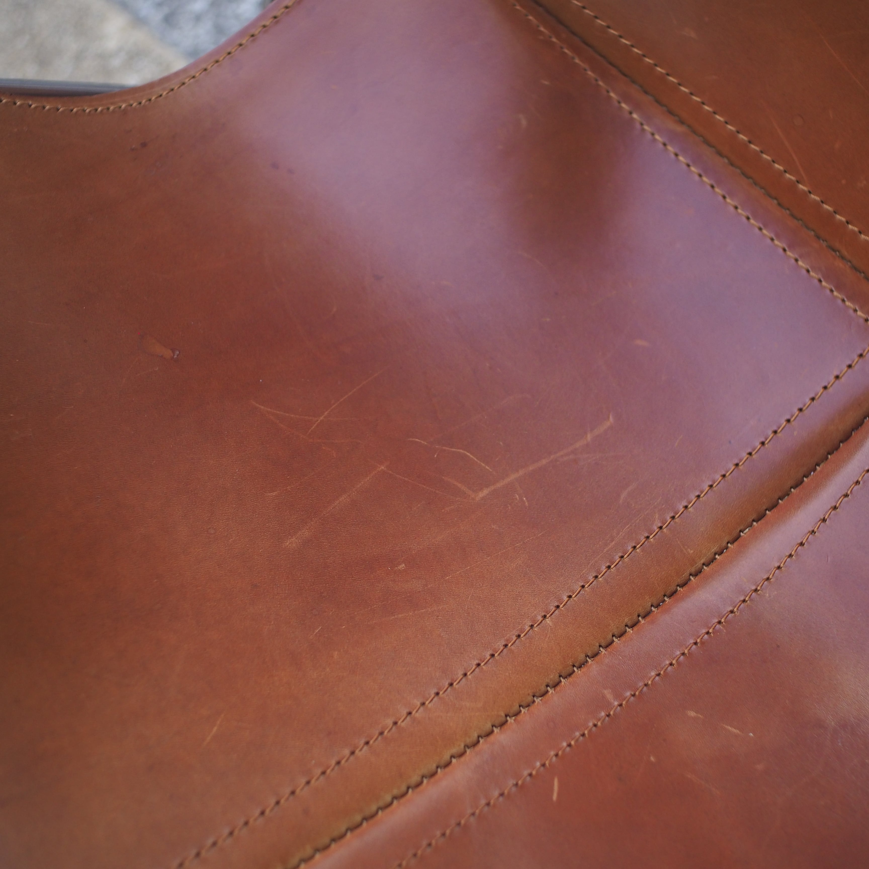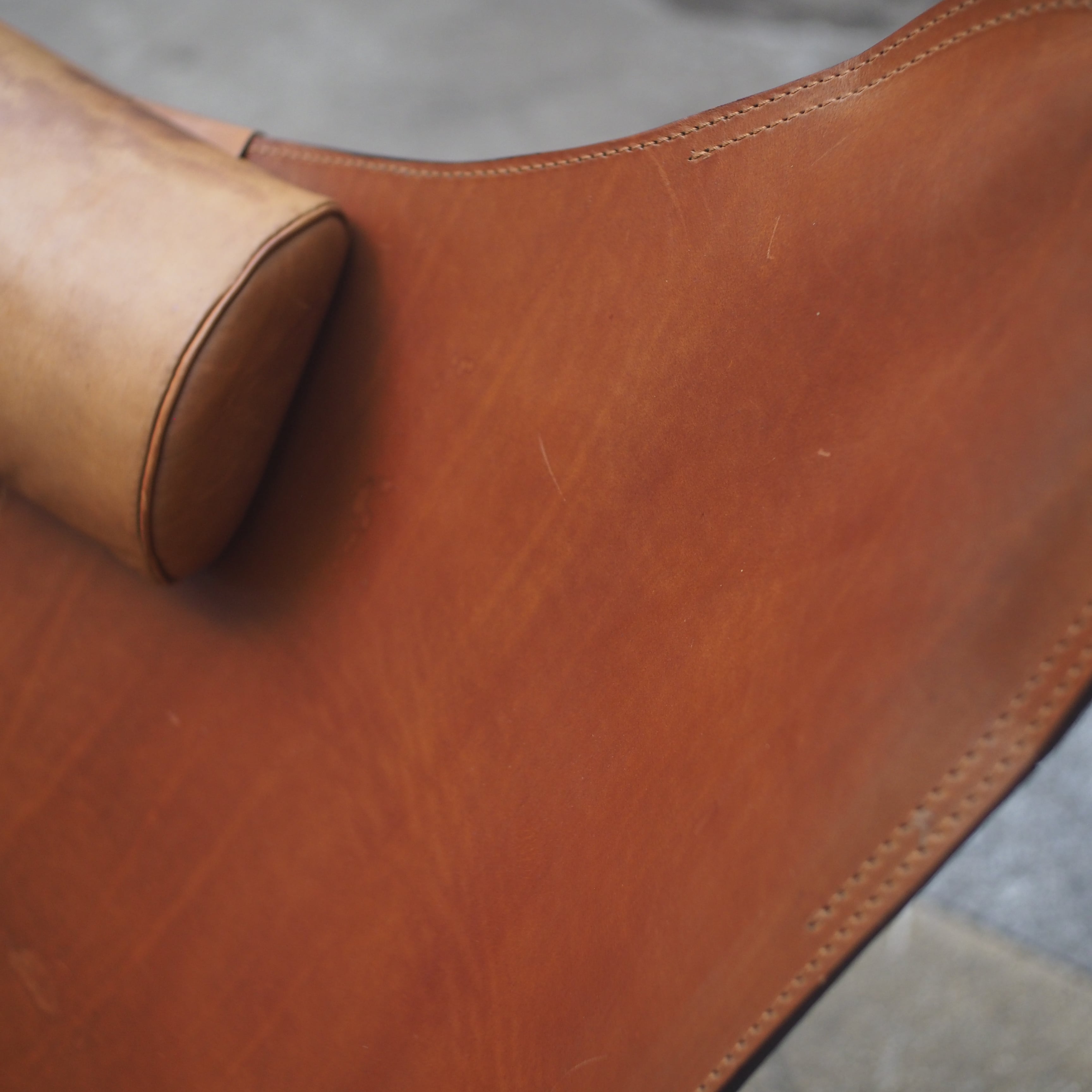 スチールフレームと厚手のレザーを組み合わせた、シンプルながら確かな存在感を持つ名作です