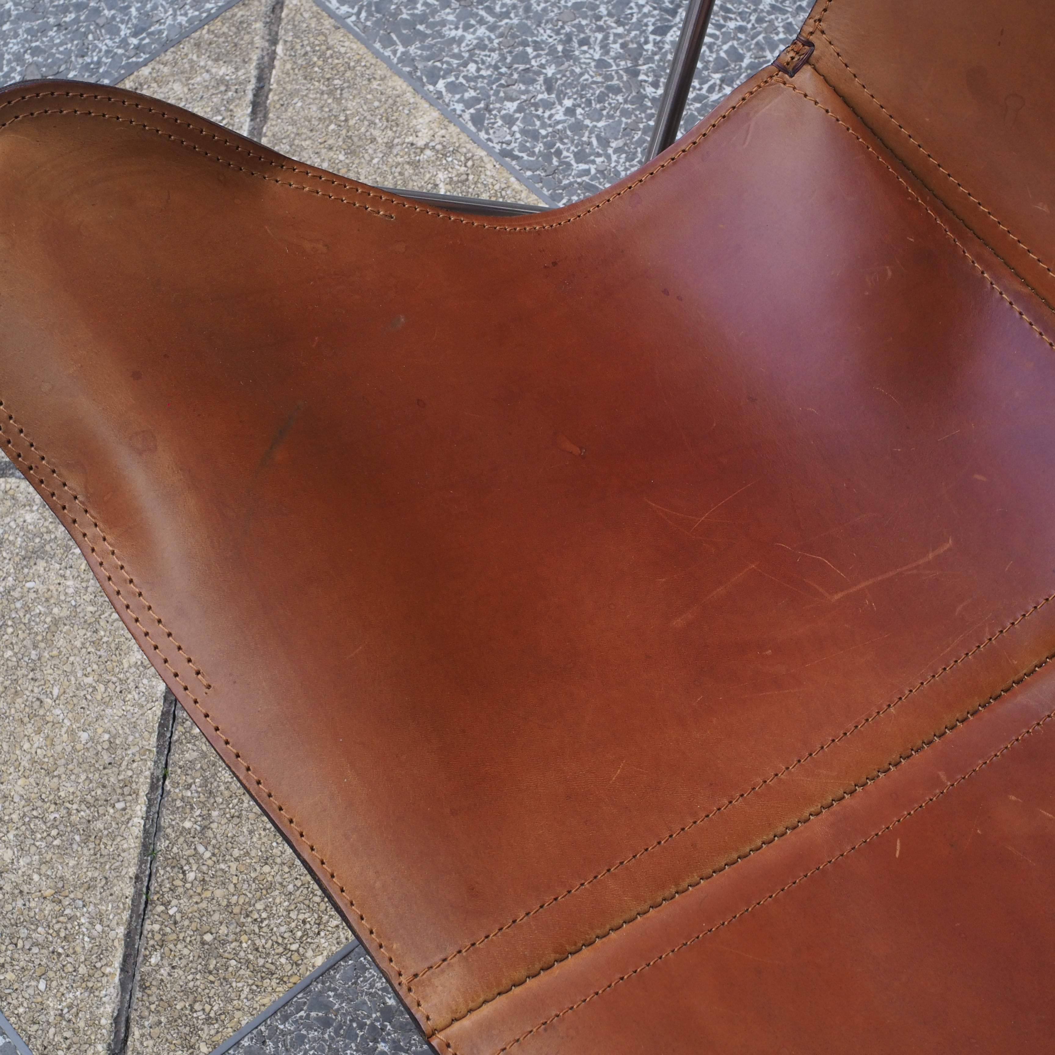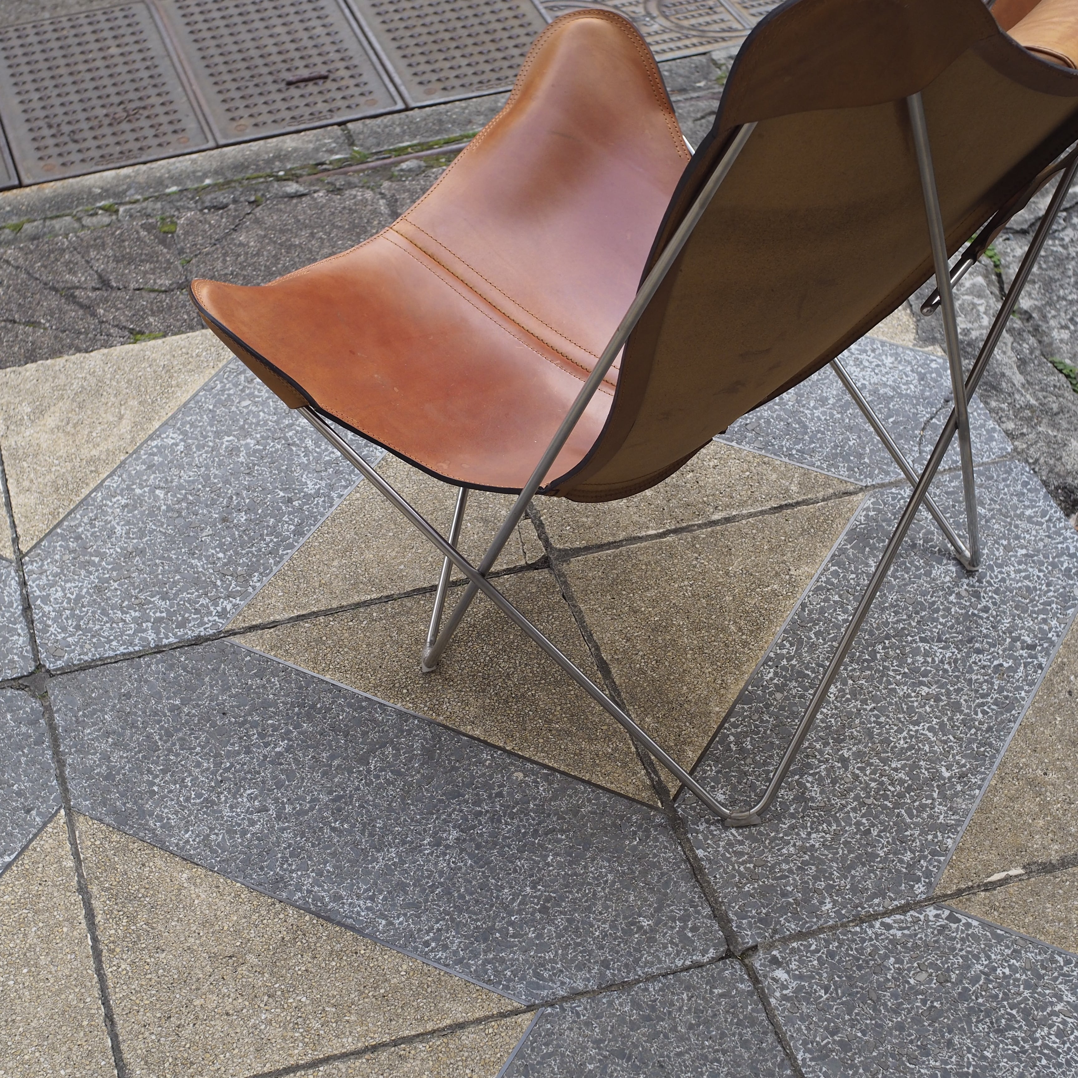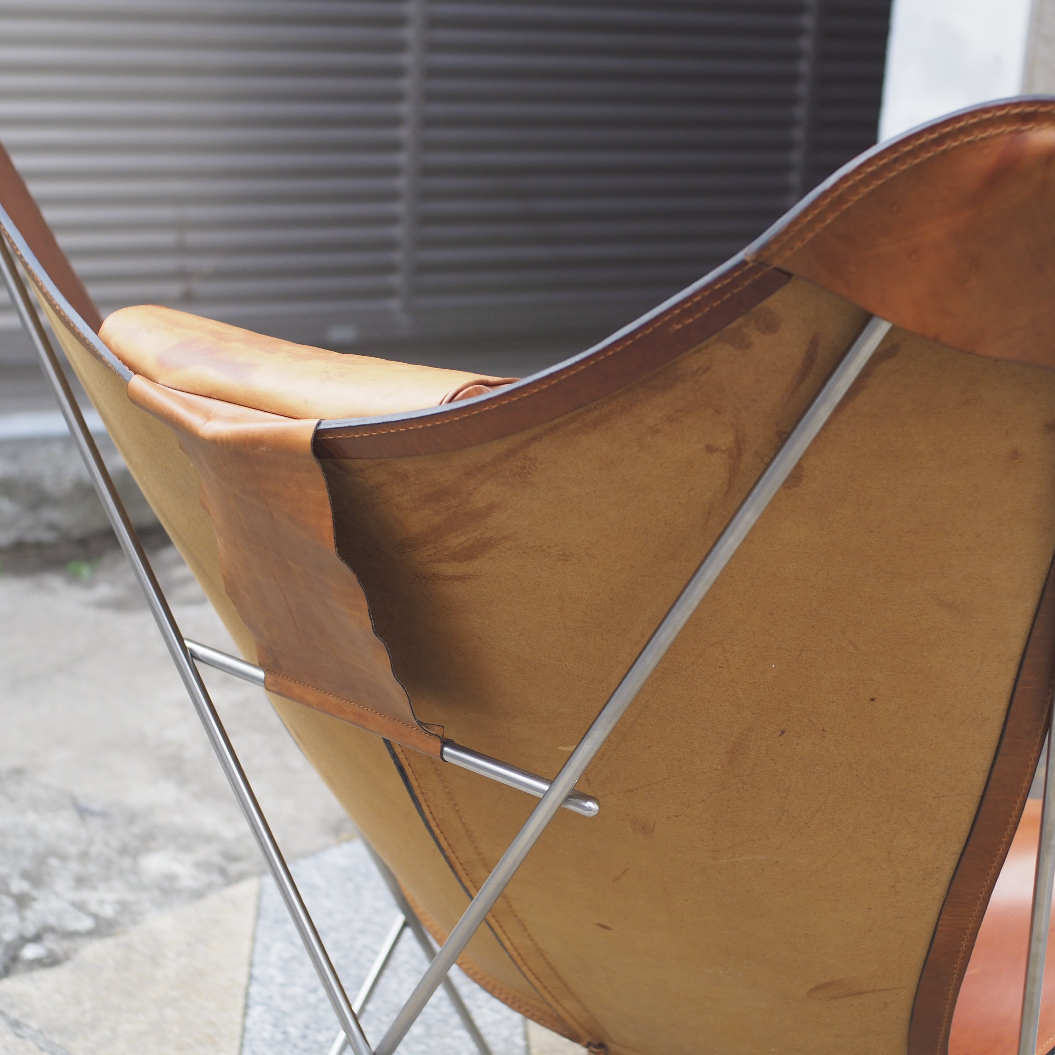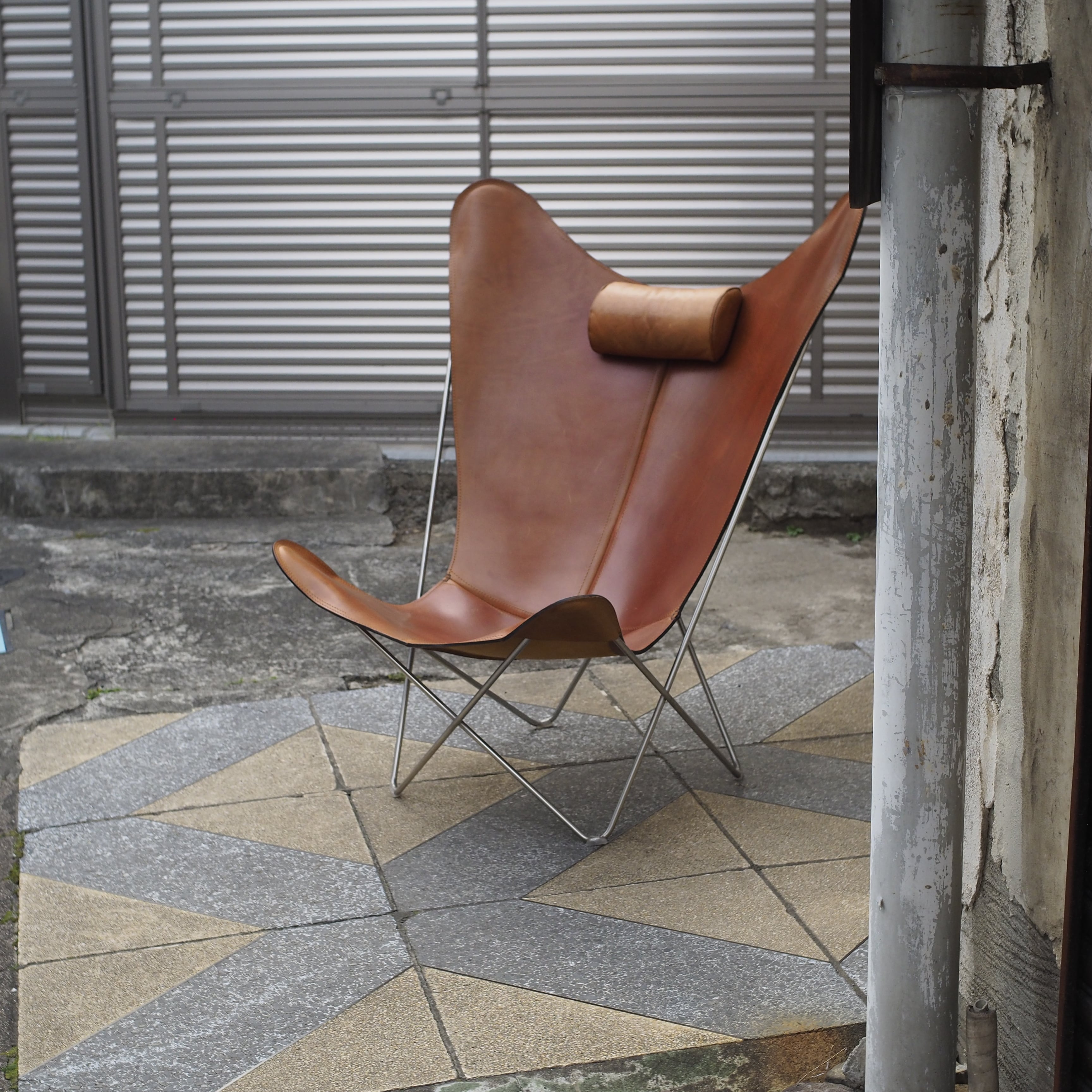 スチールフレームと厚手のレザーを組み合わせた、シンプルながら確かな存在感を持つ名作です