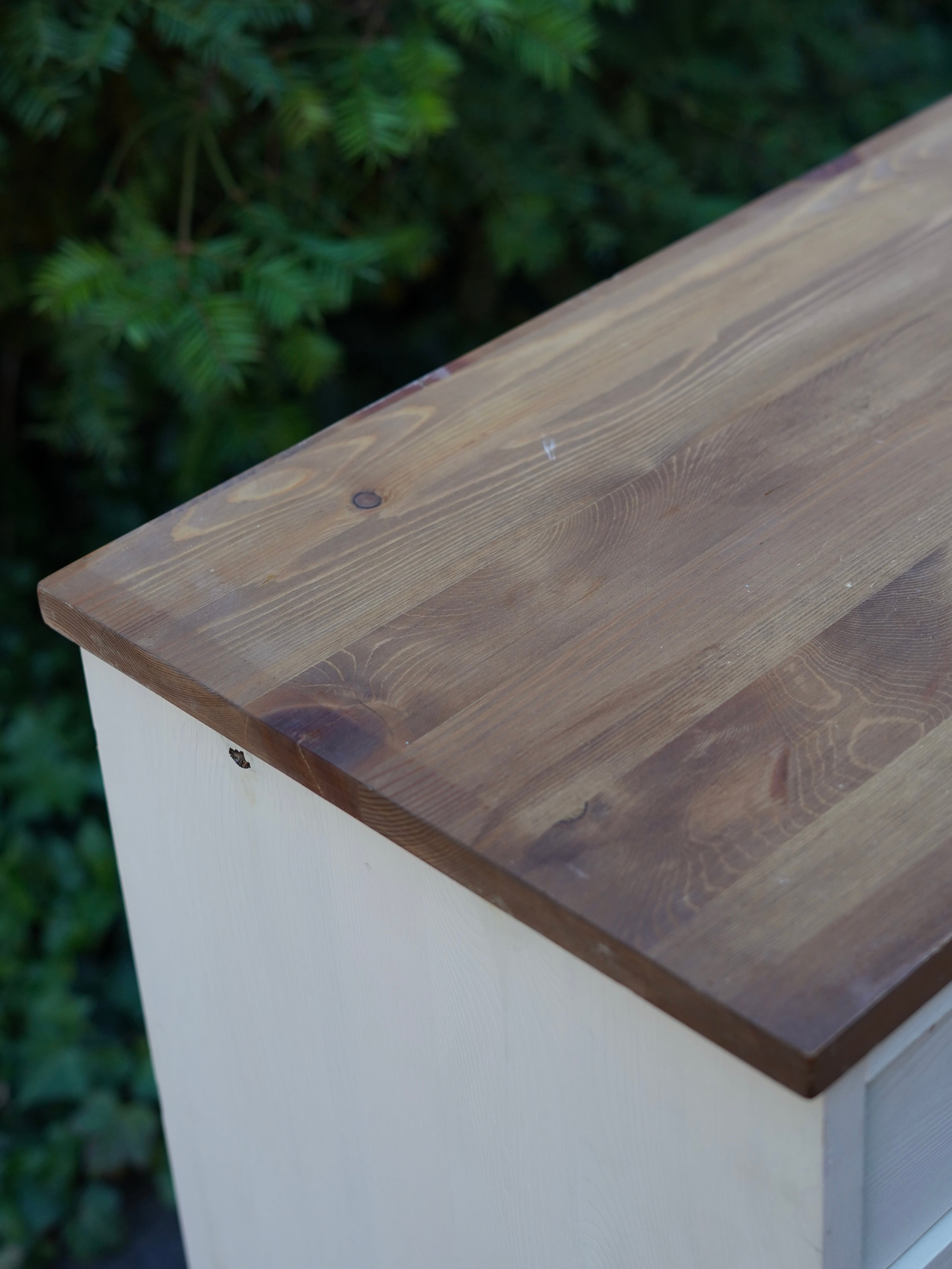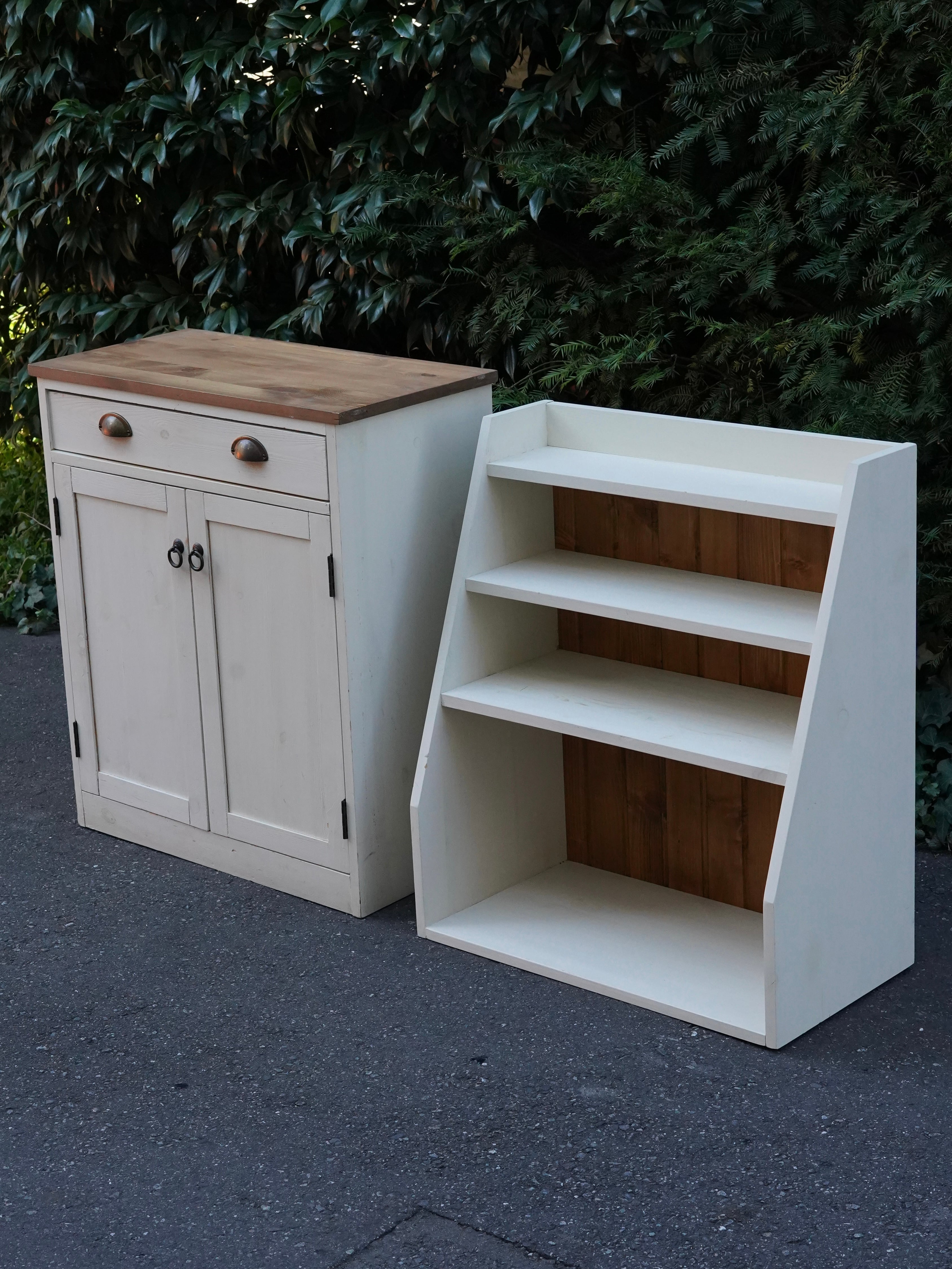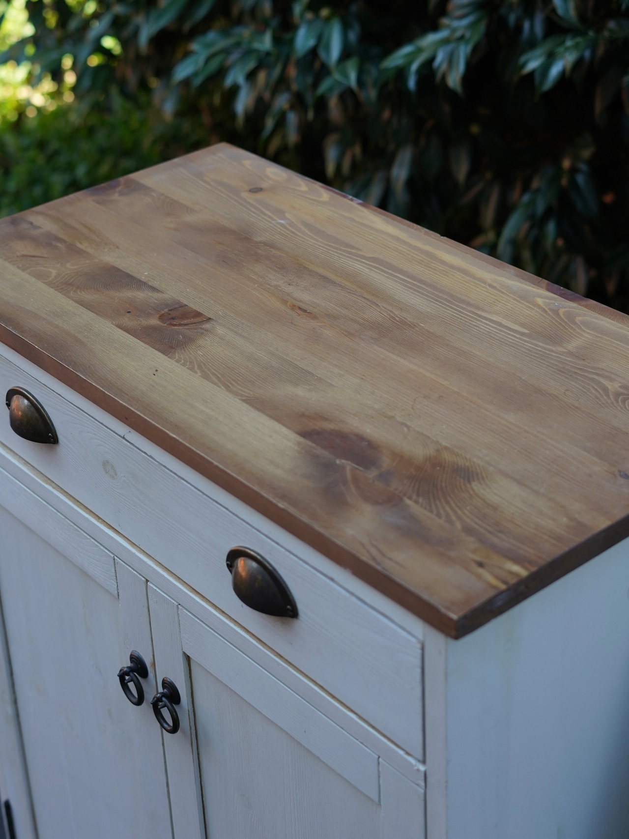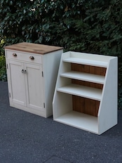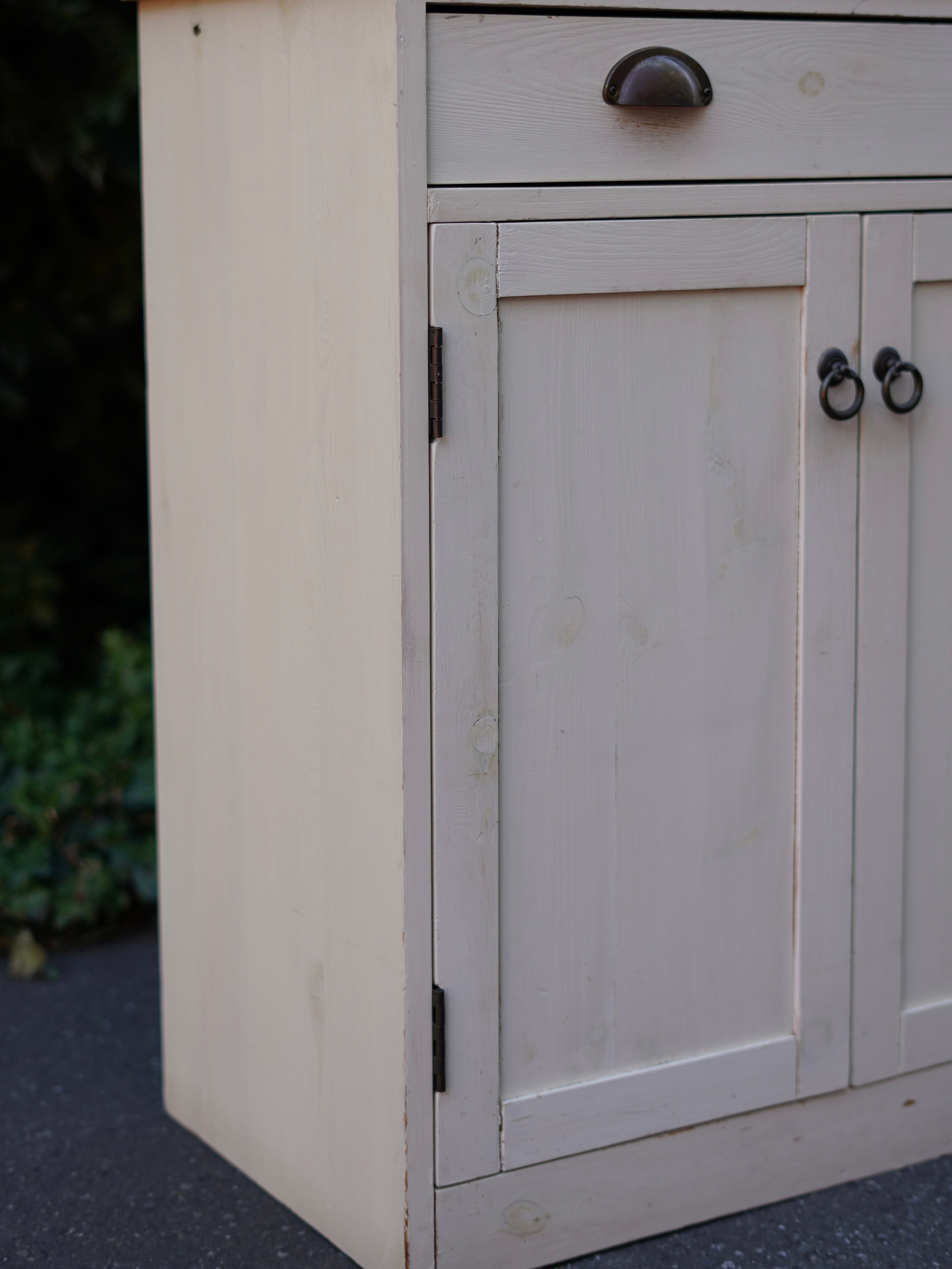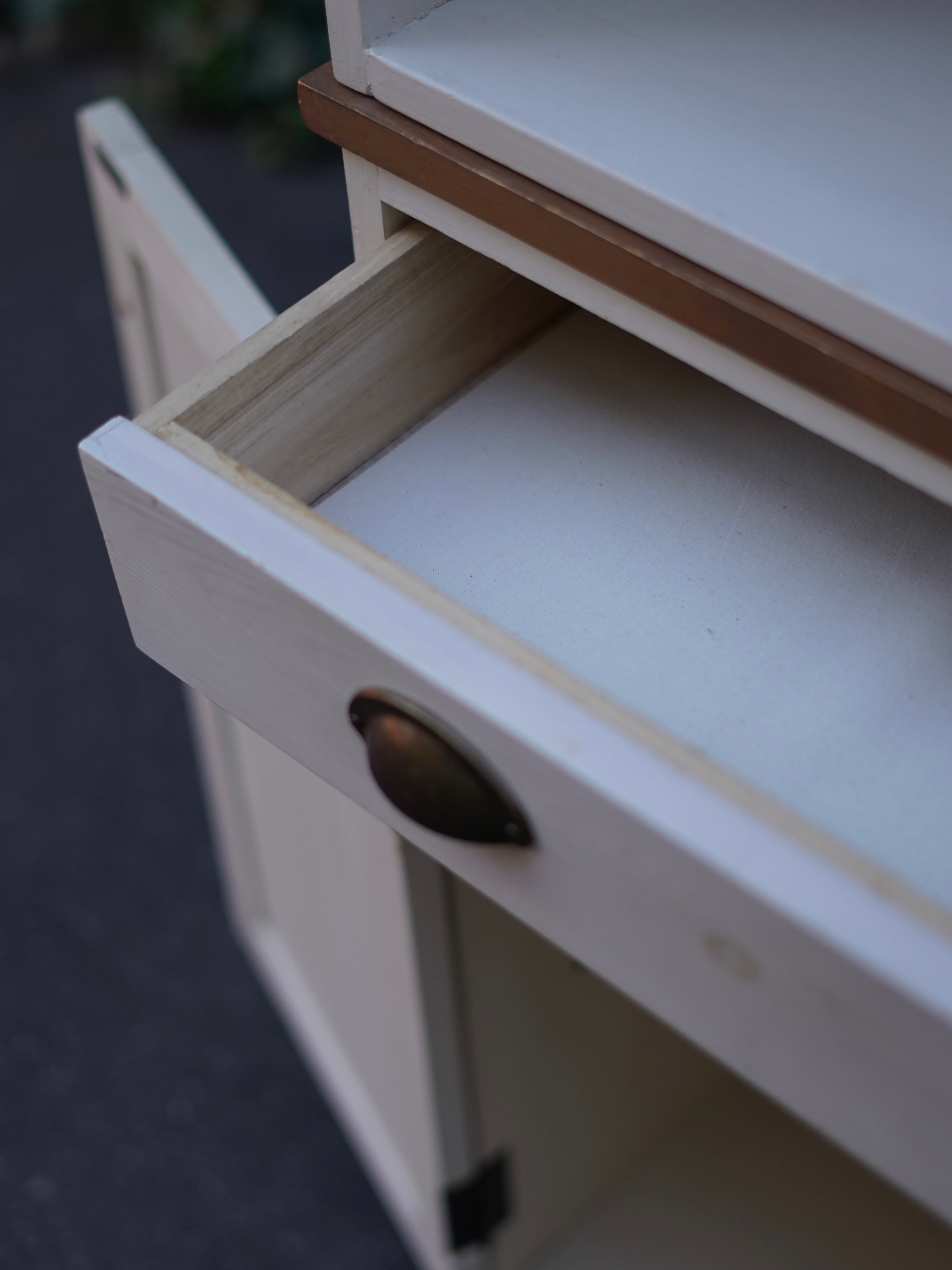 カントリー基調のデザインが特徴的なシャビーカップボード。