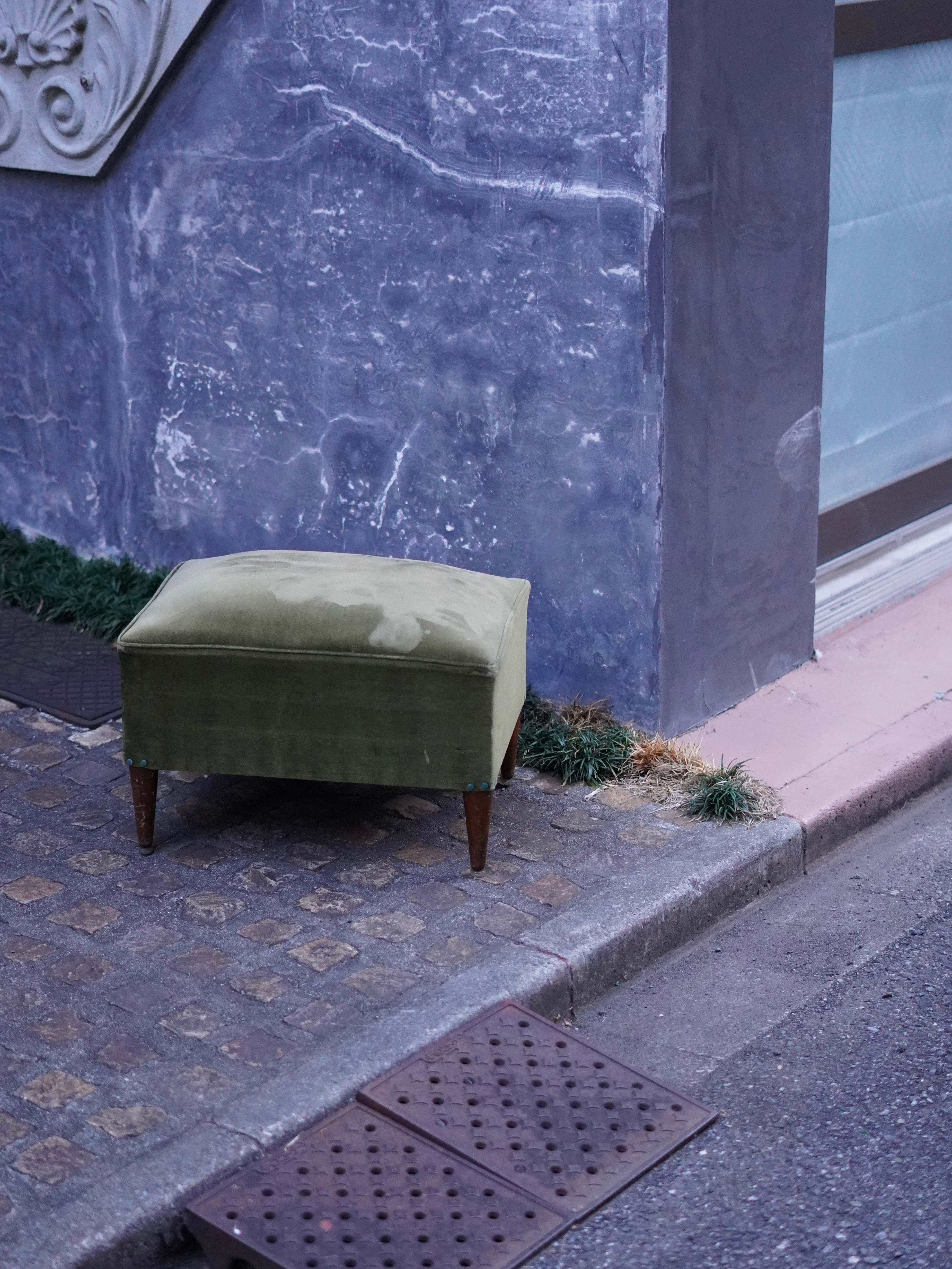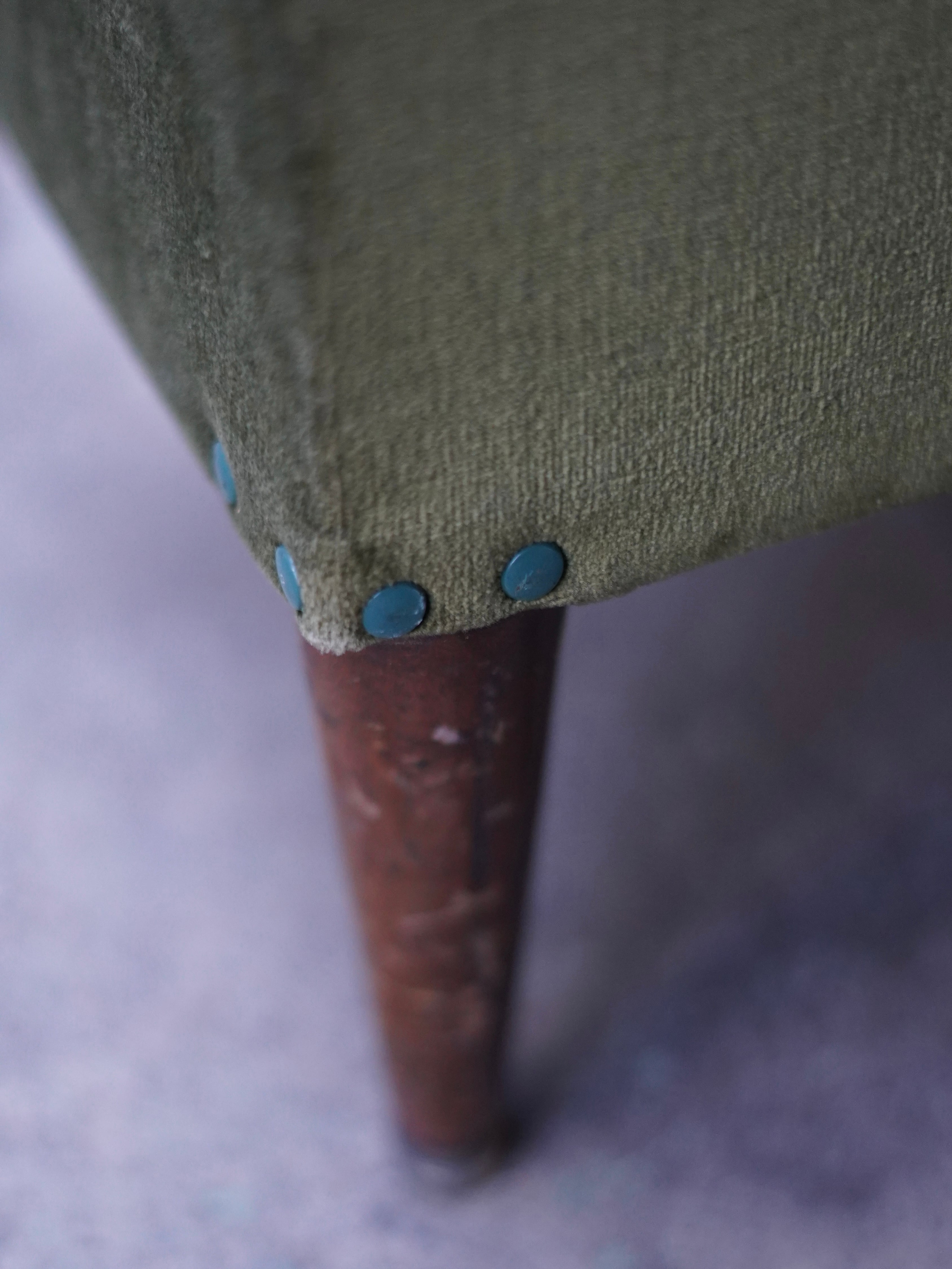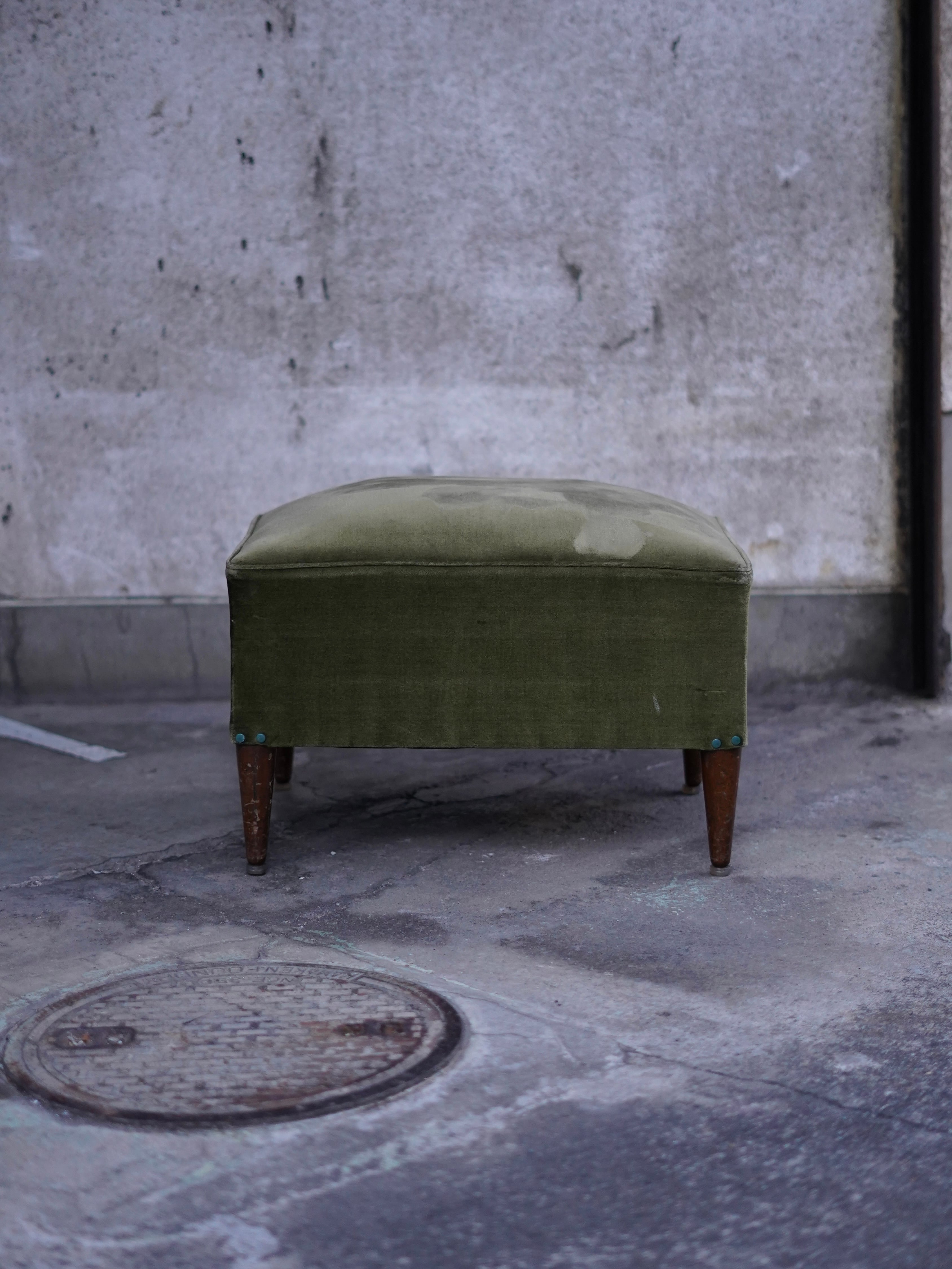 モケットグリーンが美しいヴィンテージのオットマンです。