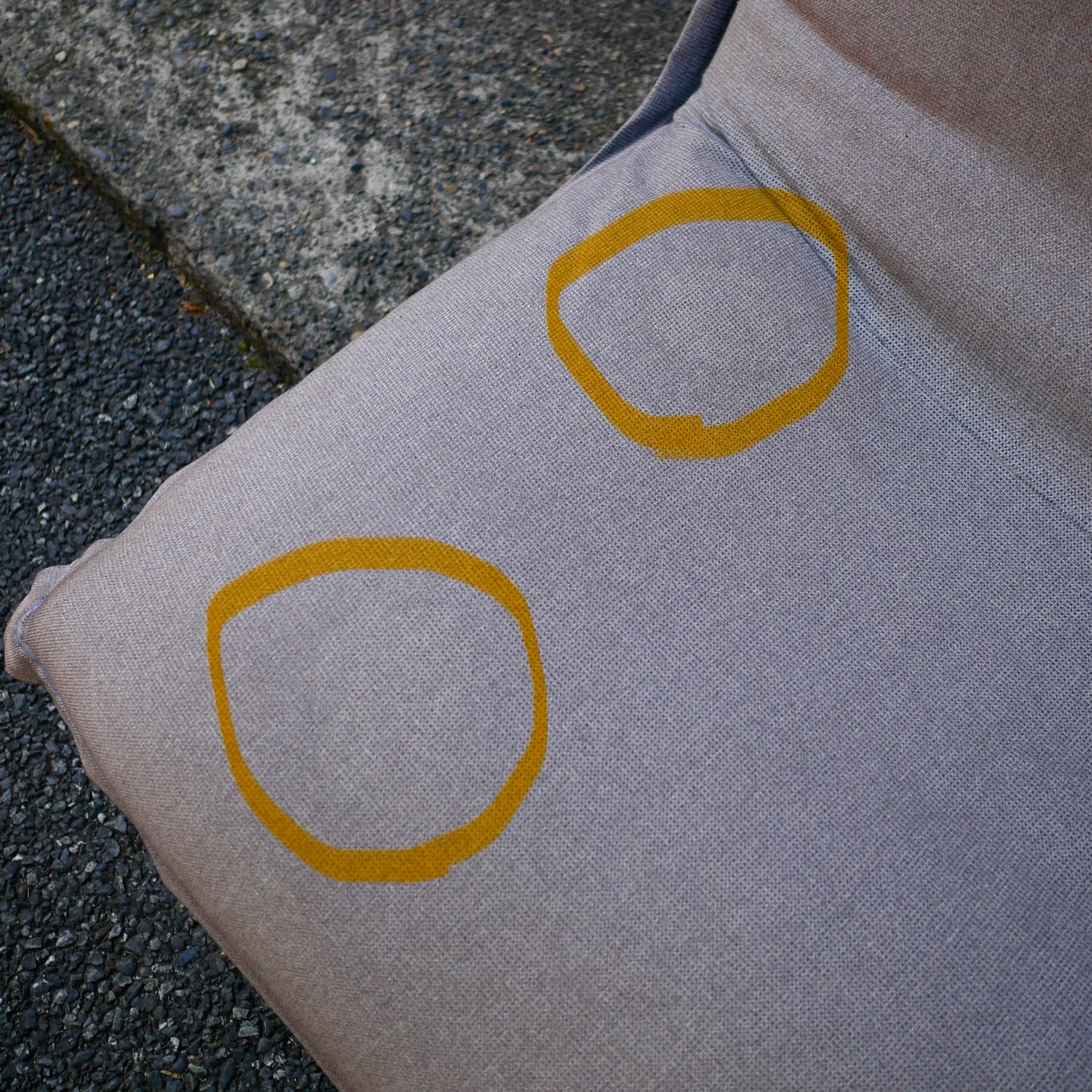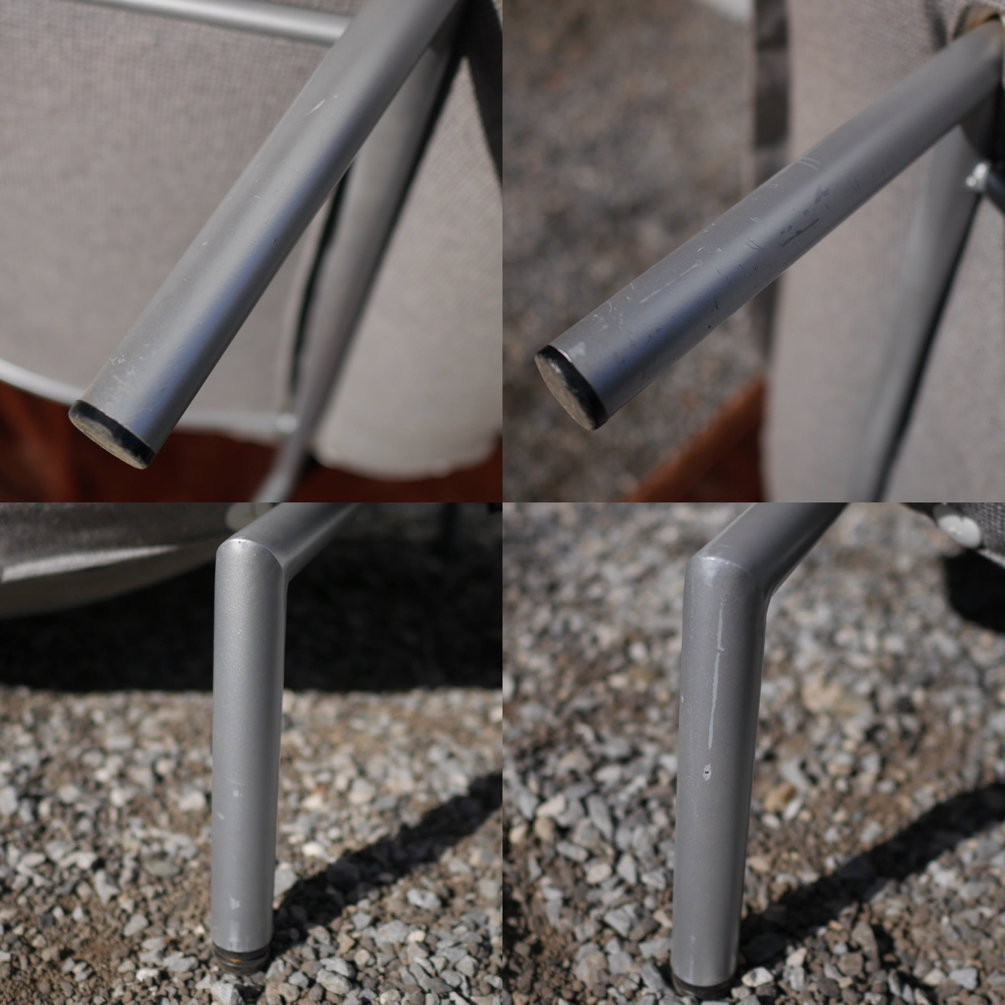 使用されておりましたので、脚にキズ、座面に2か所程うっすらと丸形のシミ、多少の変色がございます。