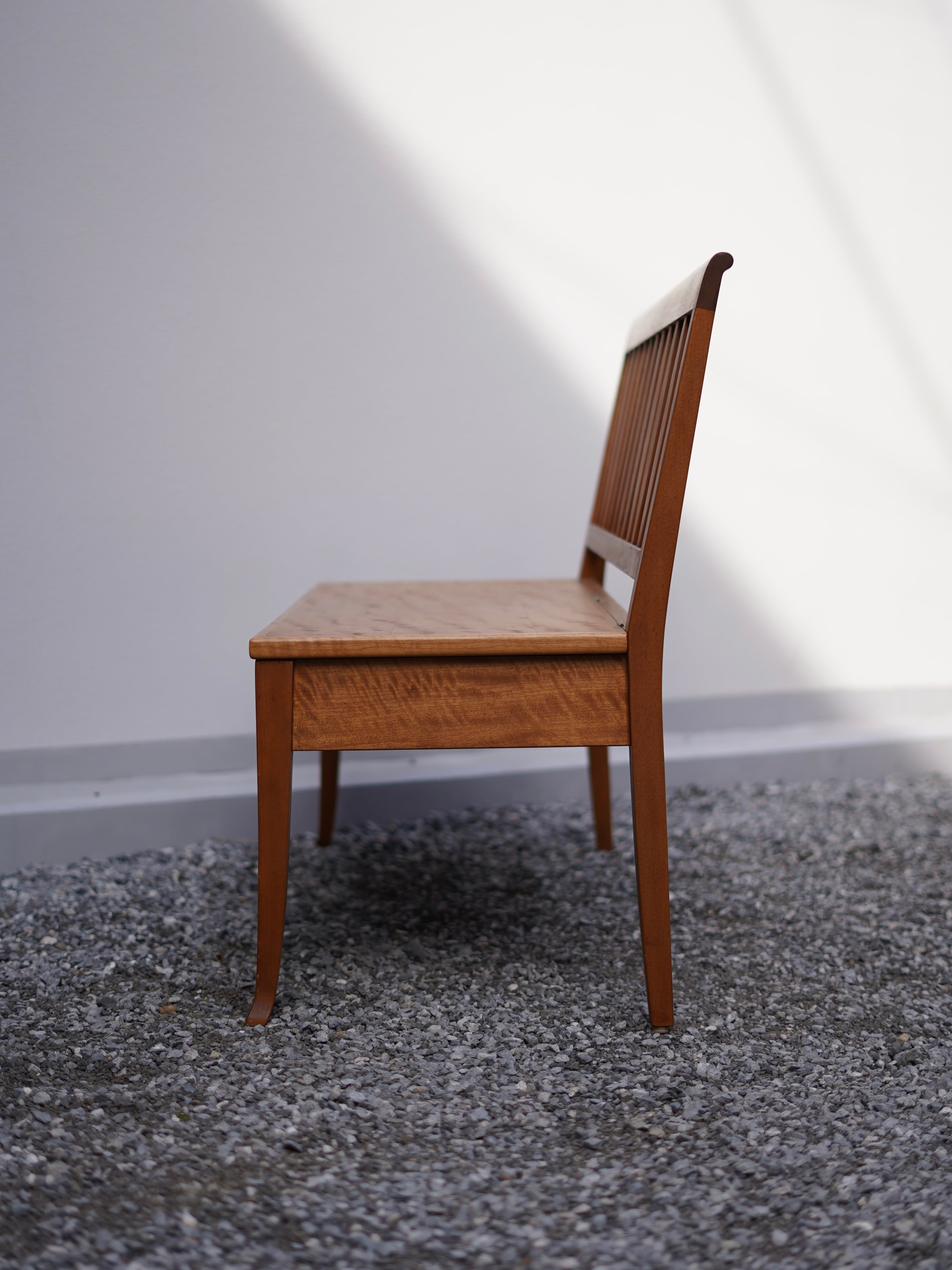 天然木ならではの美しさが際立つデザインで 背もたれのラインがアクセントになっています。