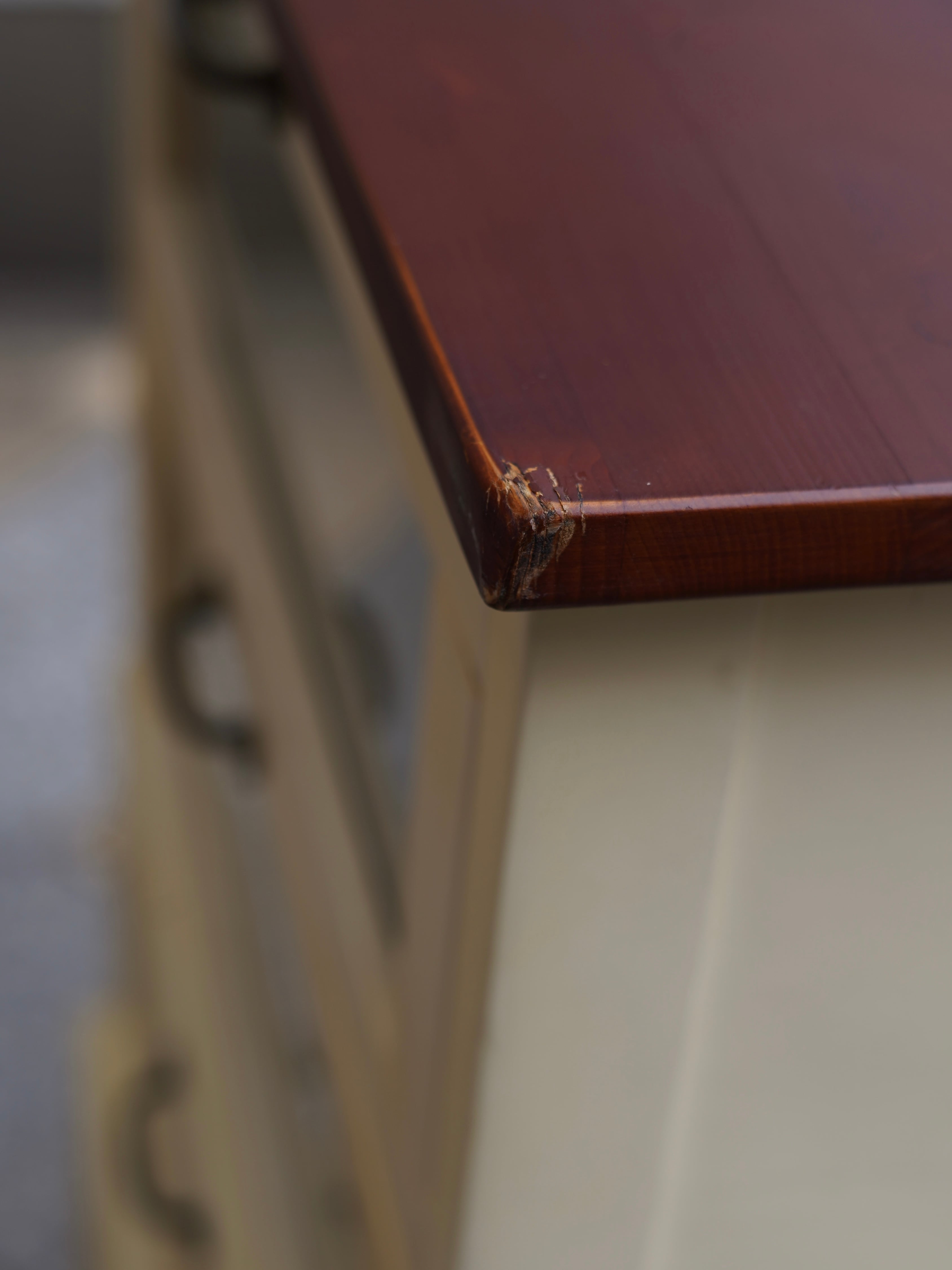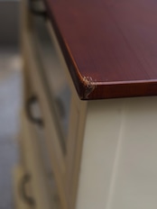 天板の木がアクセントになっており、シンプルながら洗練された逸品。