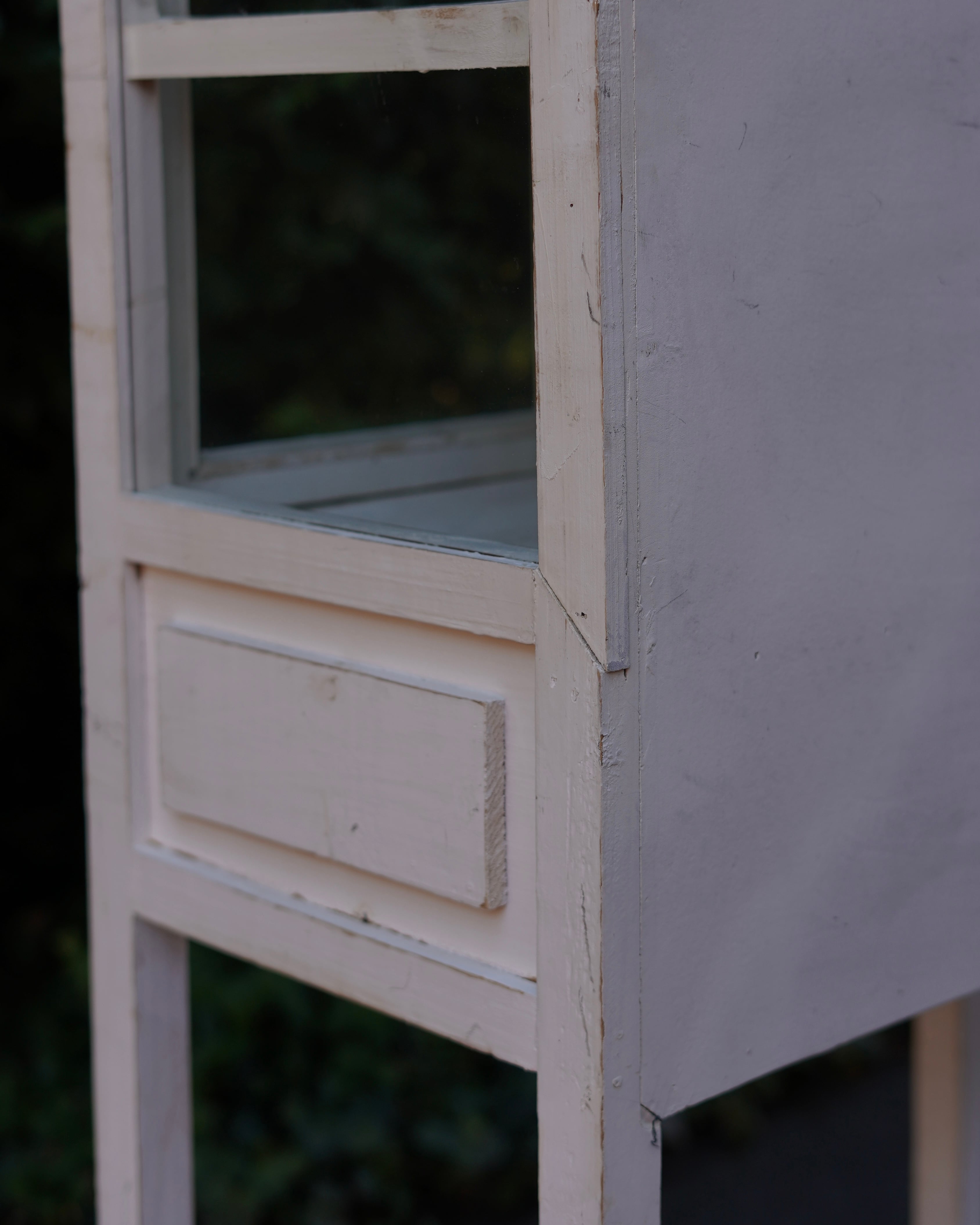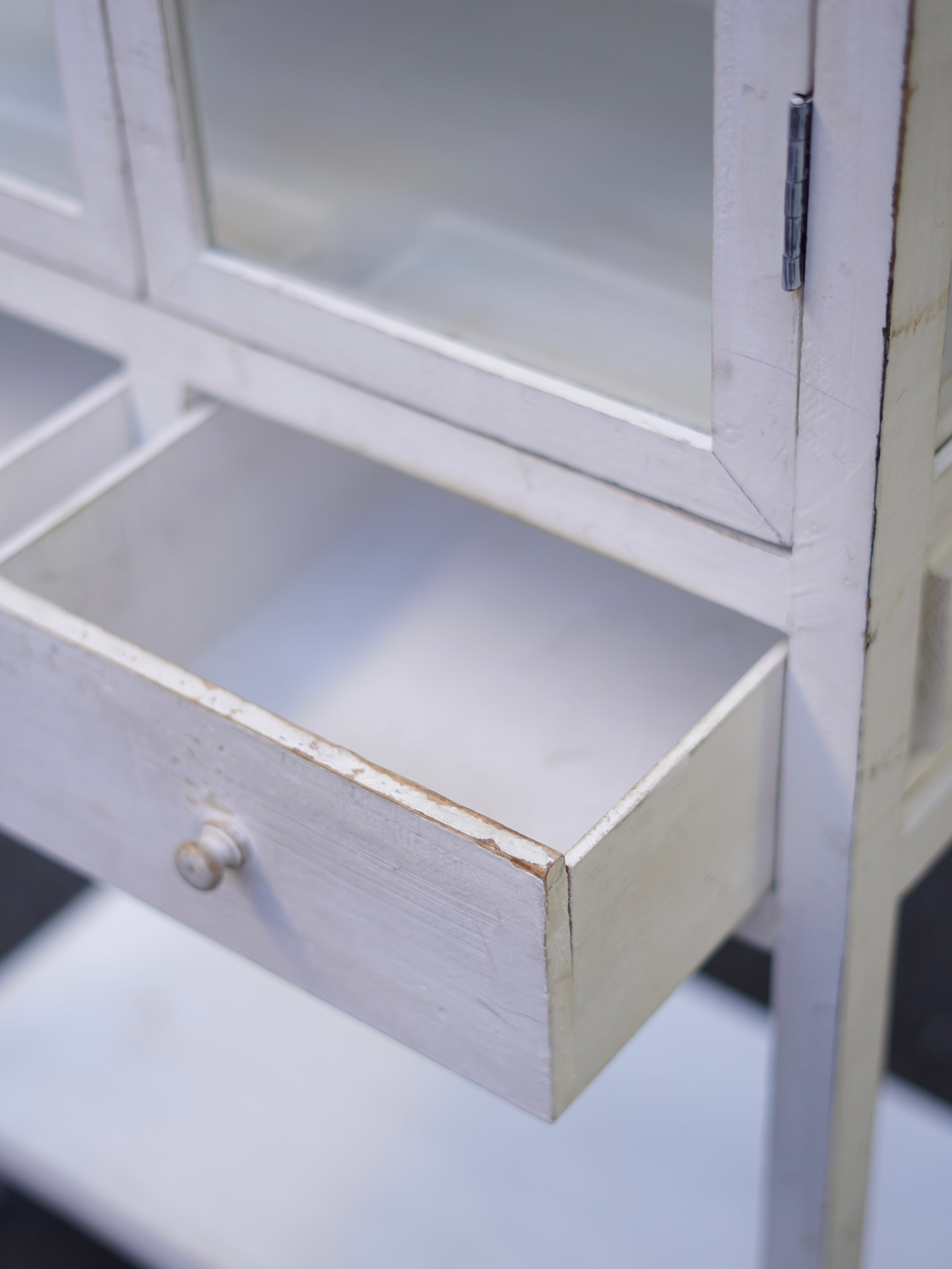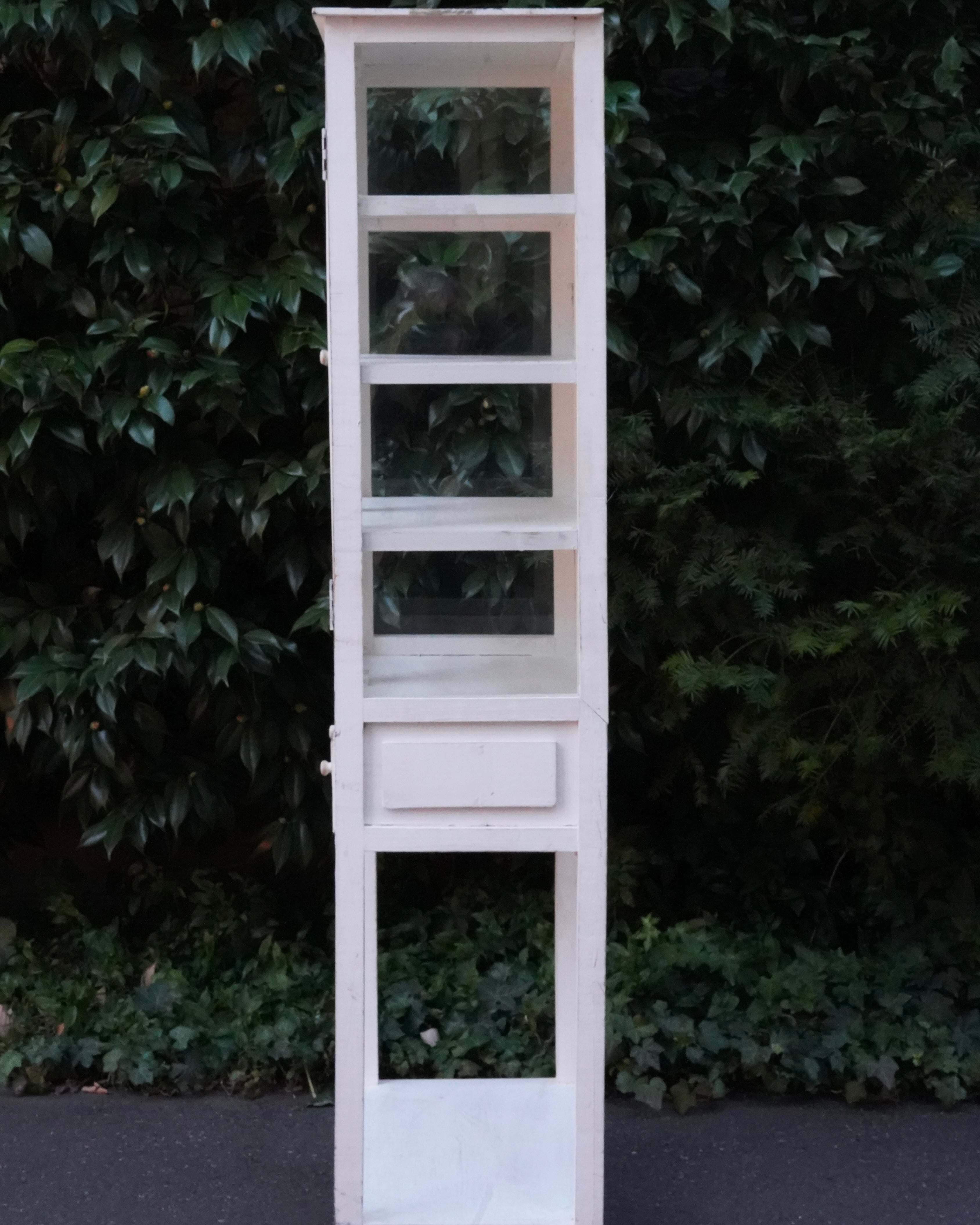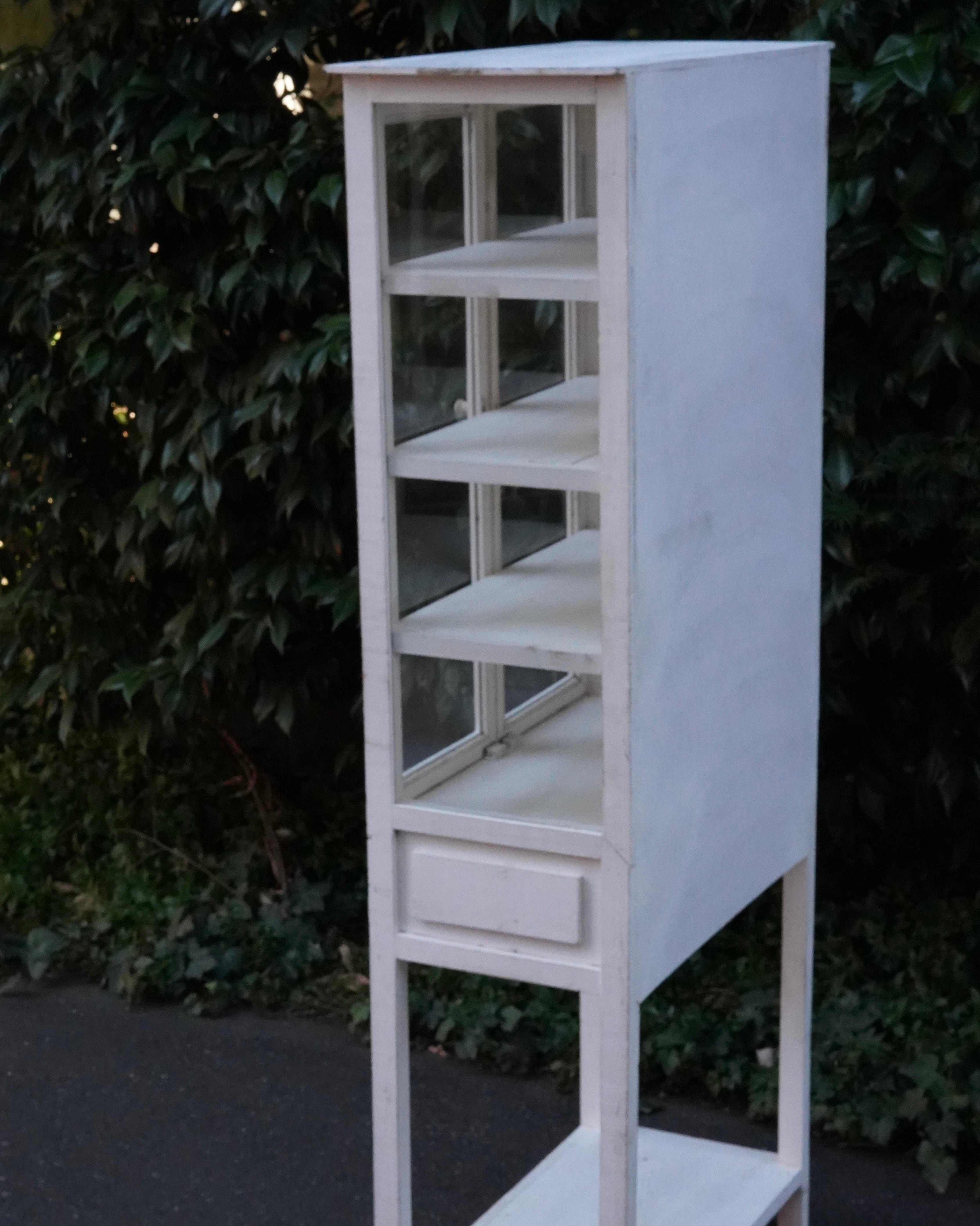 ケビントとは、ドイツ語の「キャビネット(Cabinet)」がなまった言葉で、日本では医療用の薬棚や棚を指すのが一般的です。ガラスで囲まれ、消毒液や医療器具、薬などを保管するために、昔の診療所などで使われていたものだそう。