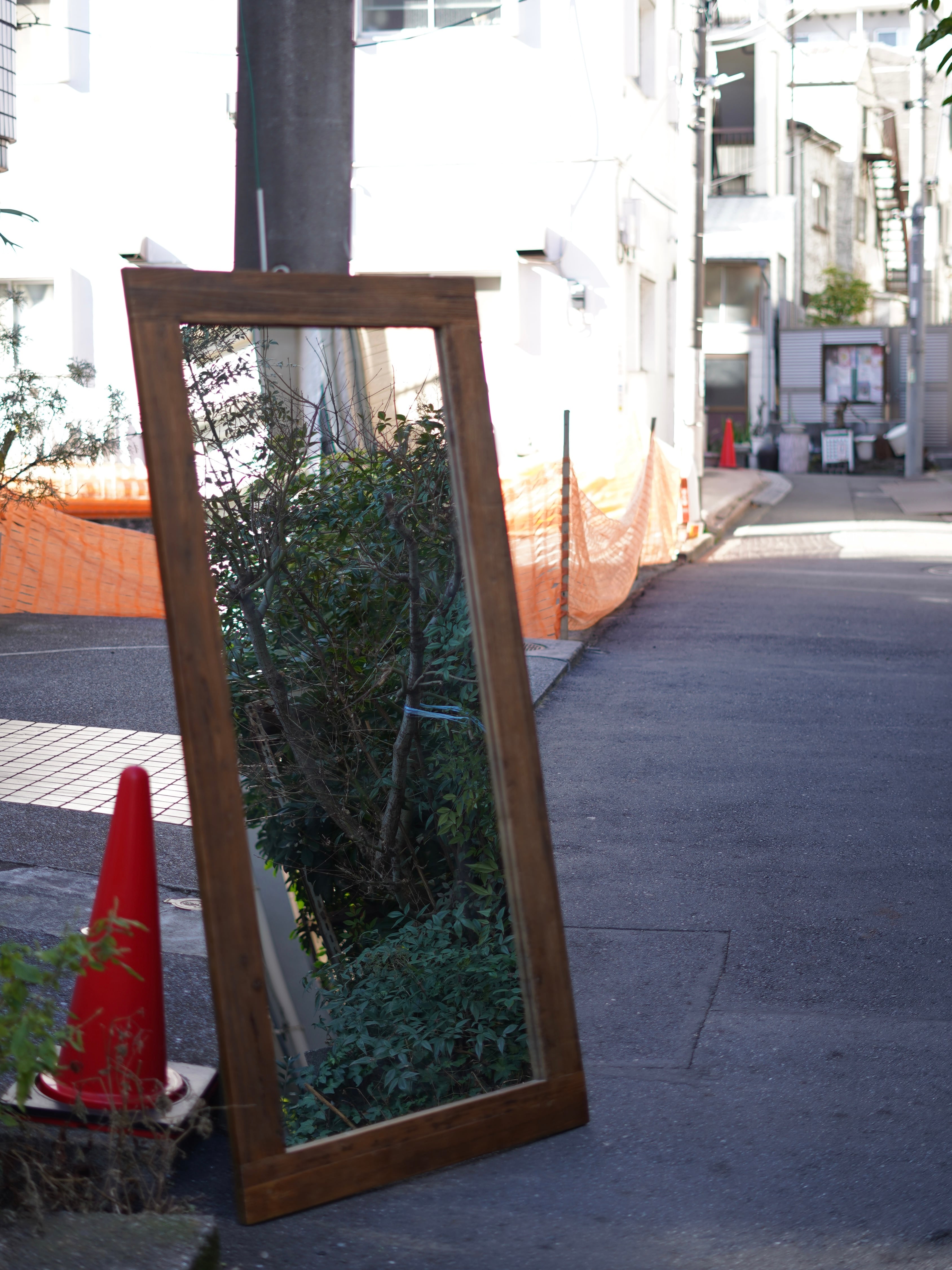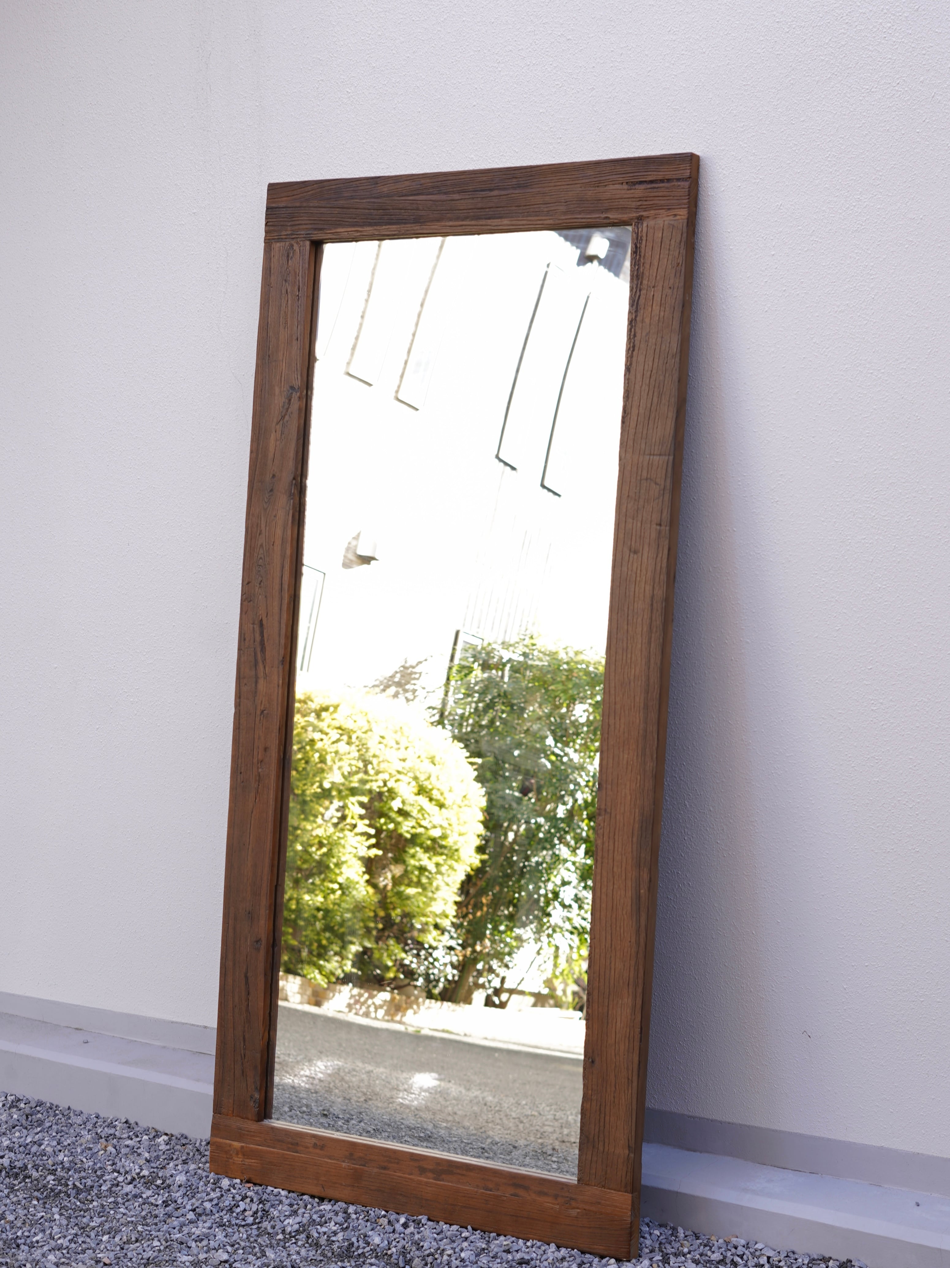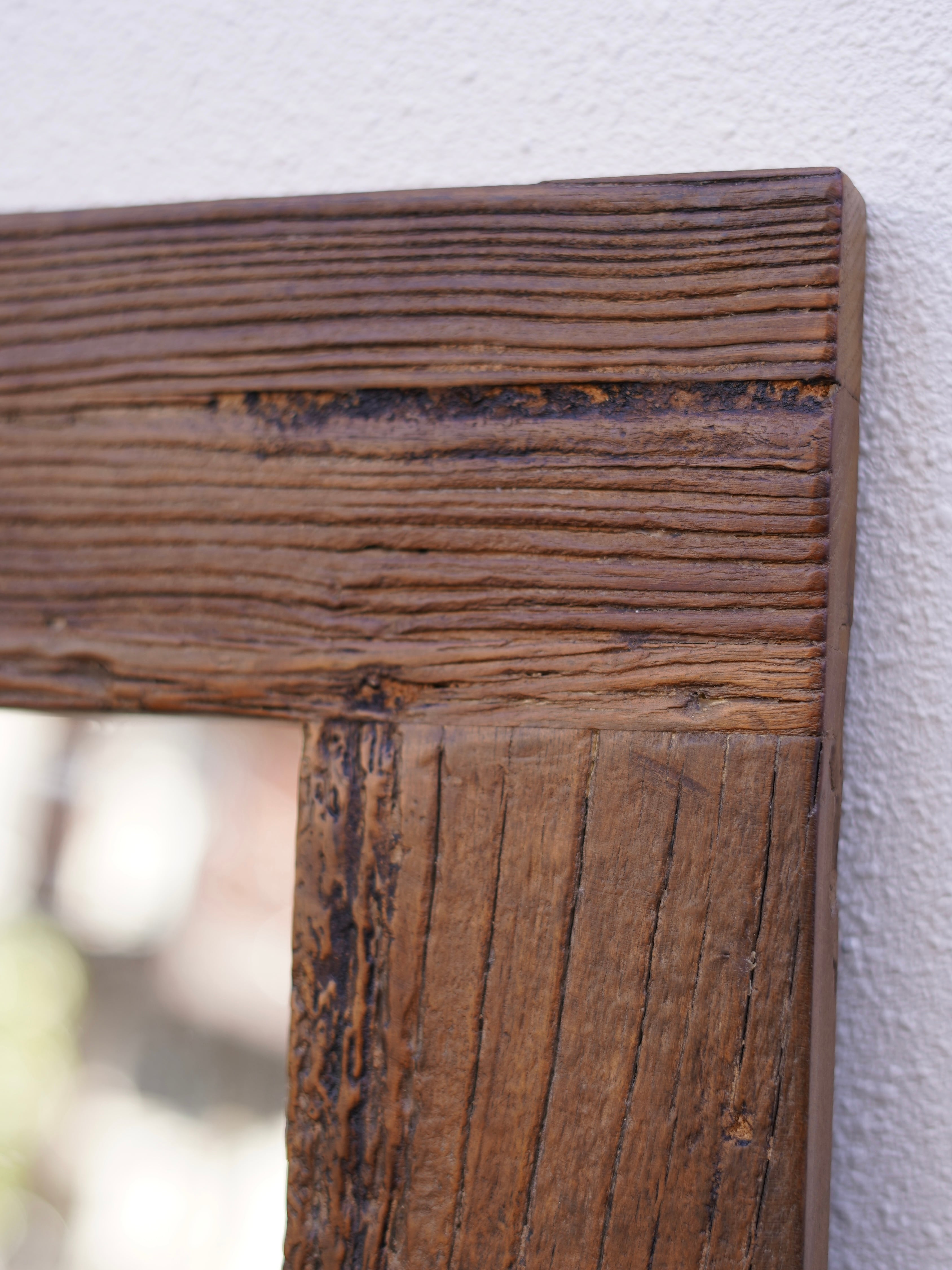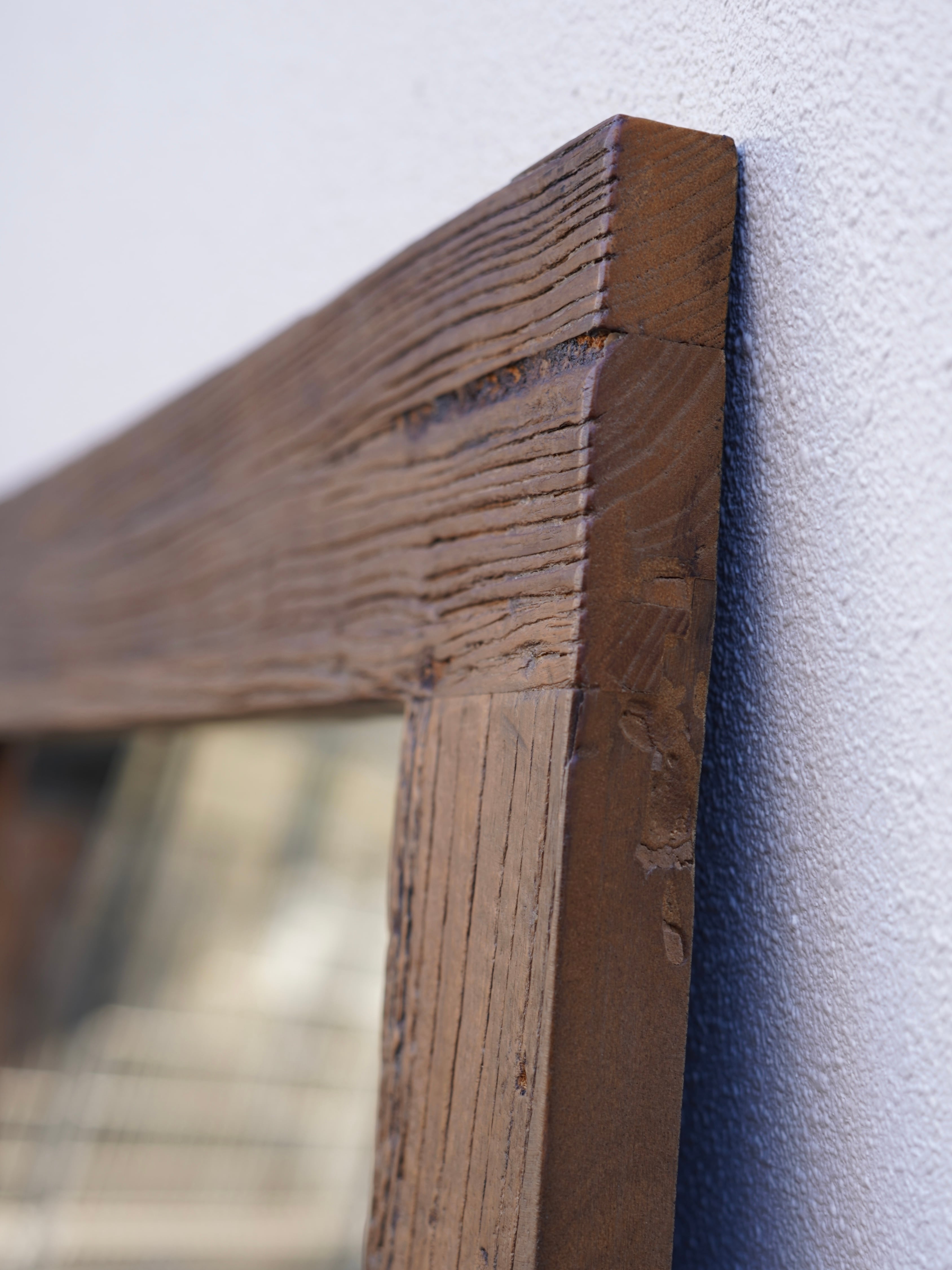 かなりズッシリドッシリとした大きめの木製ミラー。