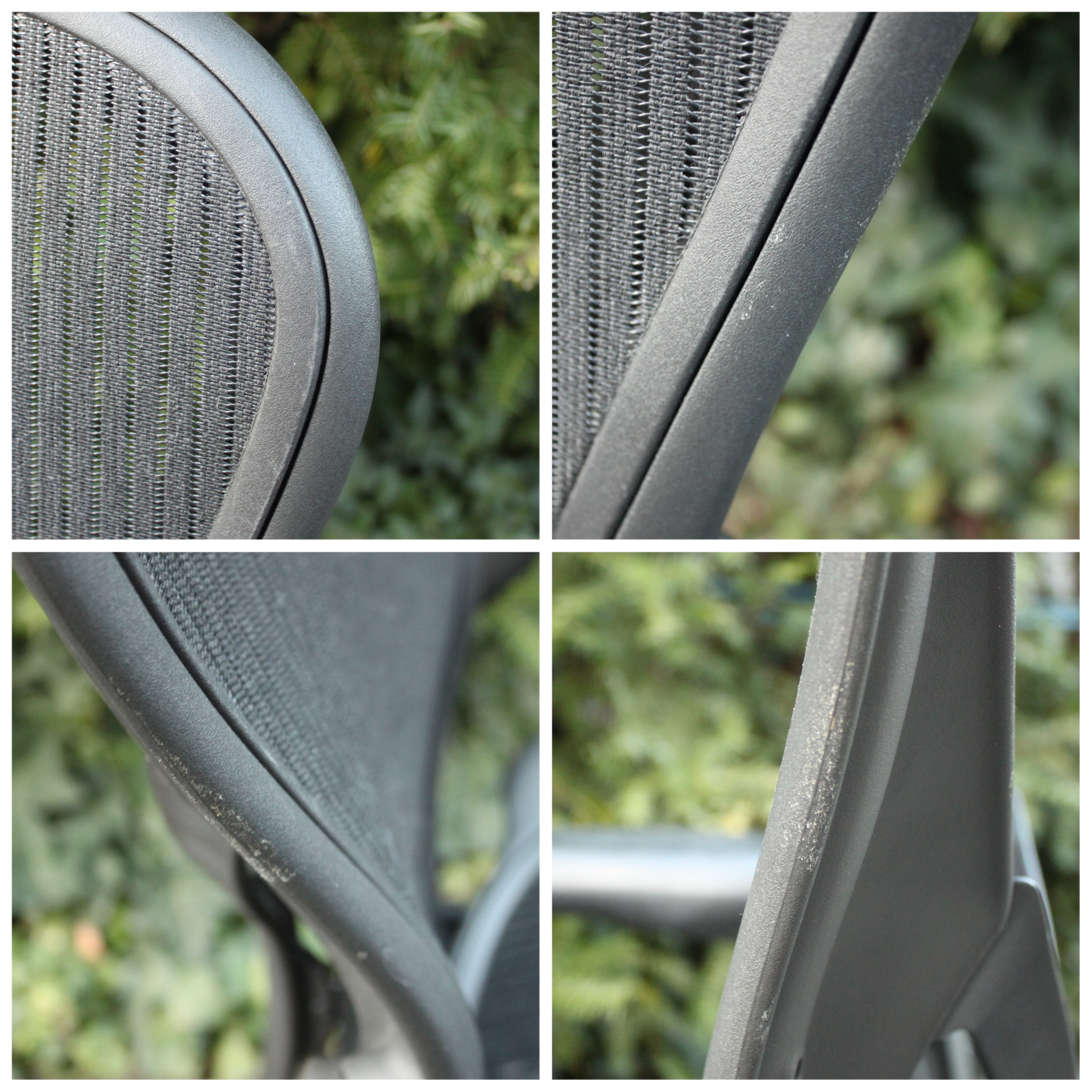 メッシュに大きな破損はございませんが、画像18枚目の赤い丸内中心にあるような、わずかに繊維が飛び出ている部分がございます。
