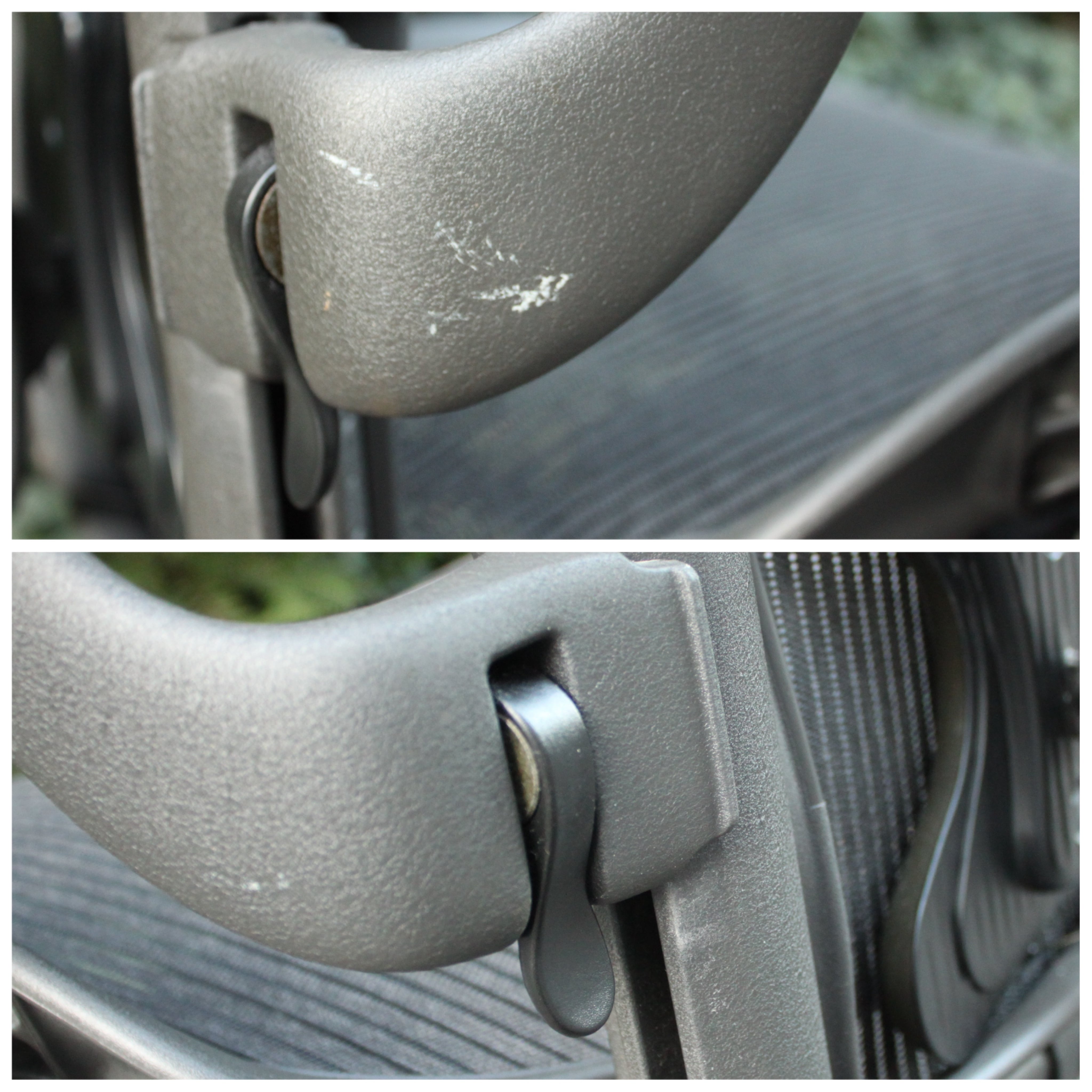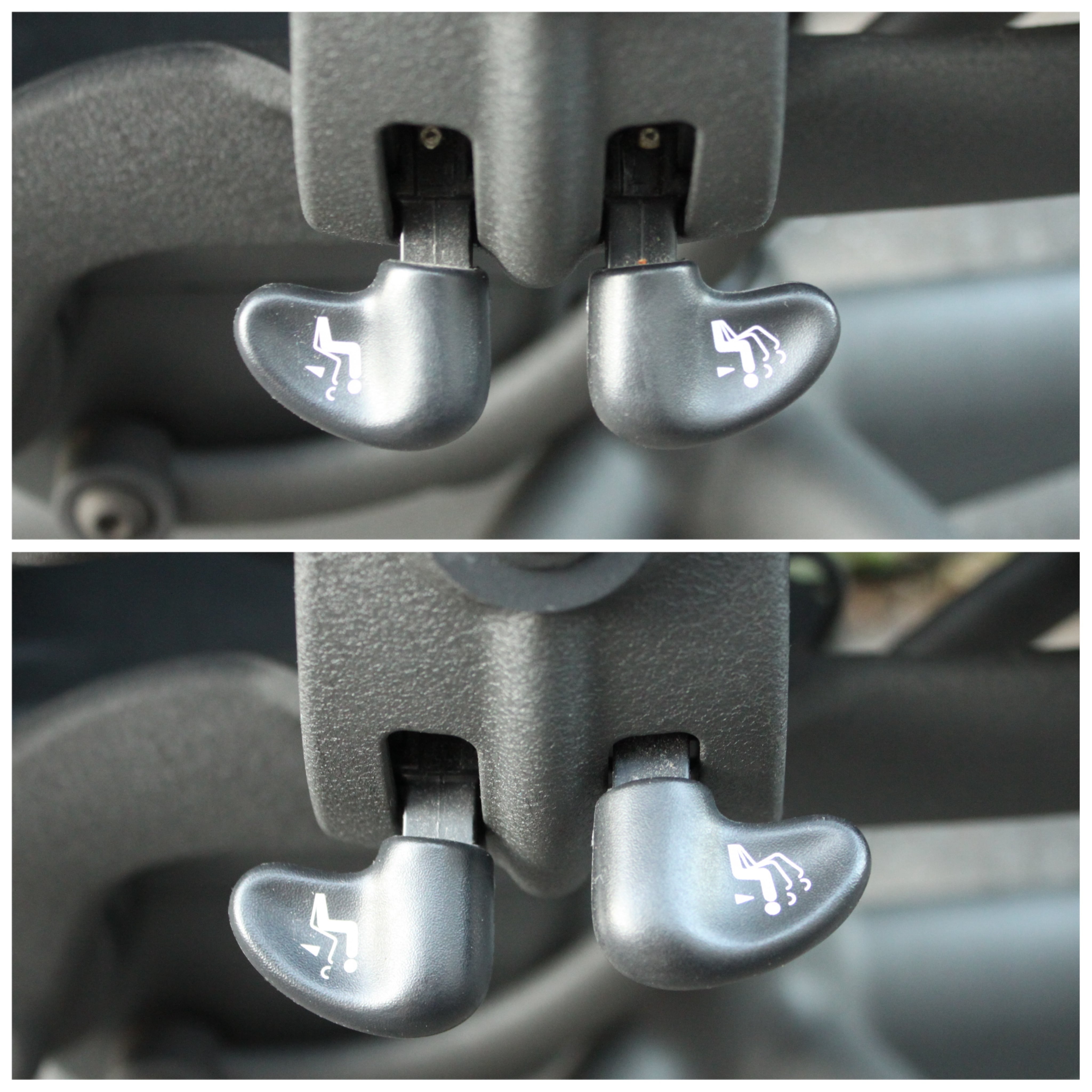 前傾チルトのレバーと調整に関して、動作確認の際に画像19枚目のようにレバーが上まで上がり切らないことがあり、ON/OFFの差が大きく分からないように感じました。