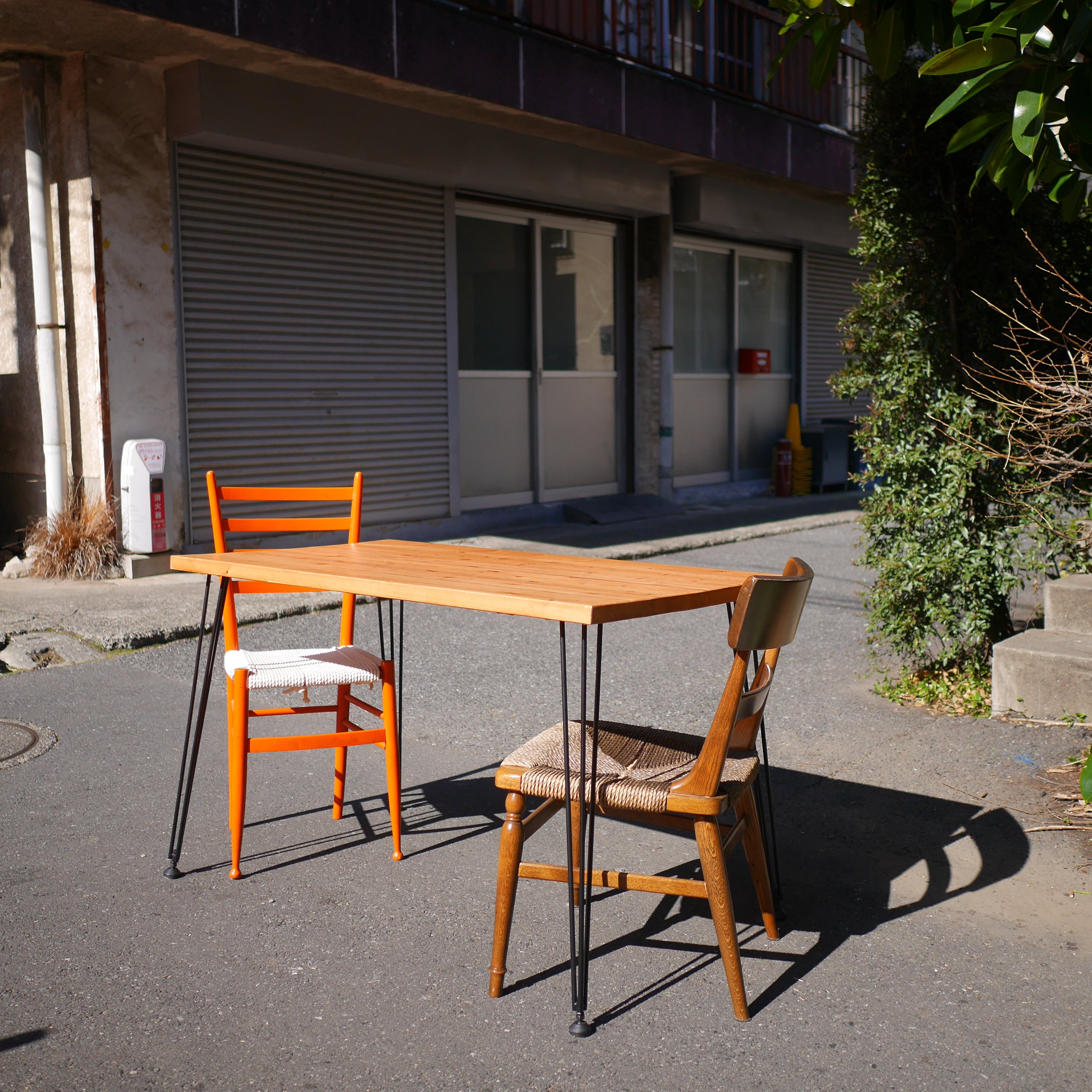 天然木を使用した温もりと細身のアイアン脚を組み合わせた