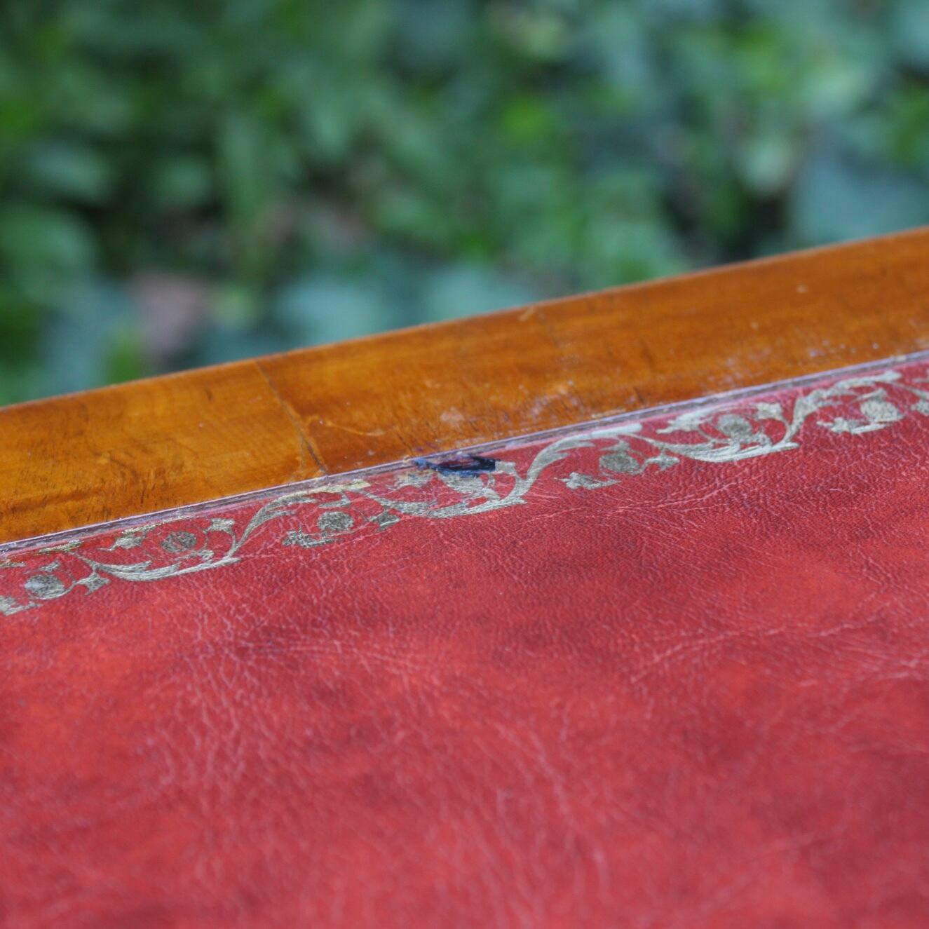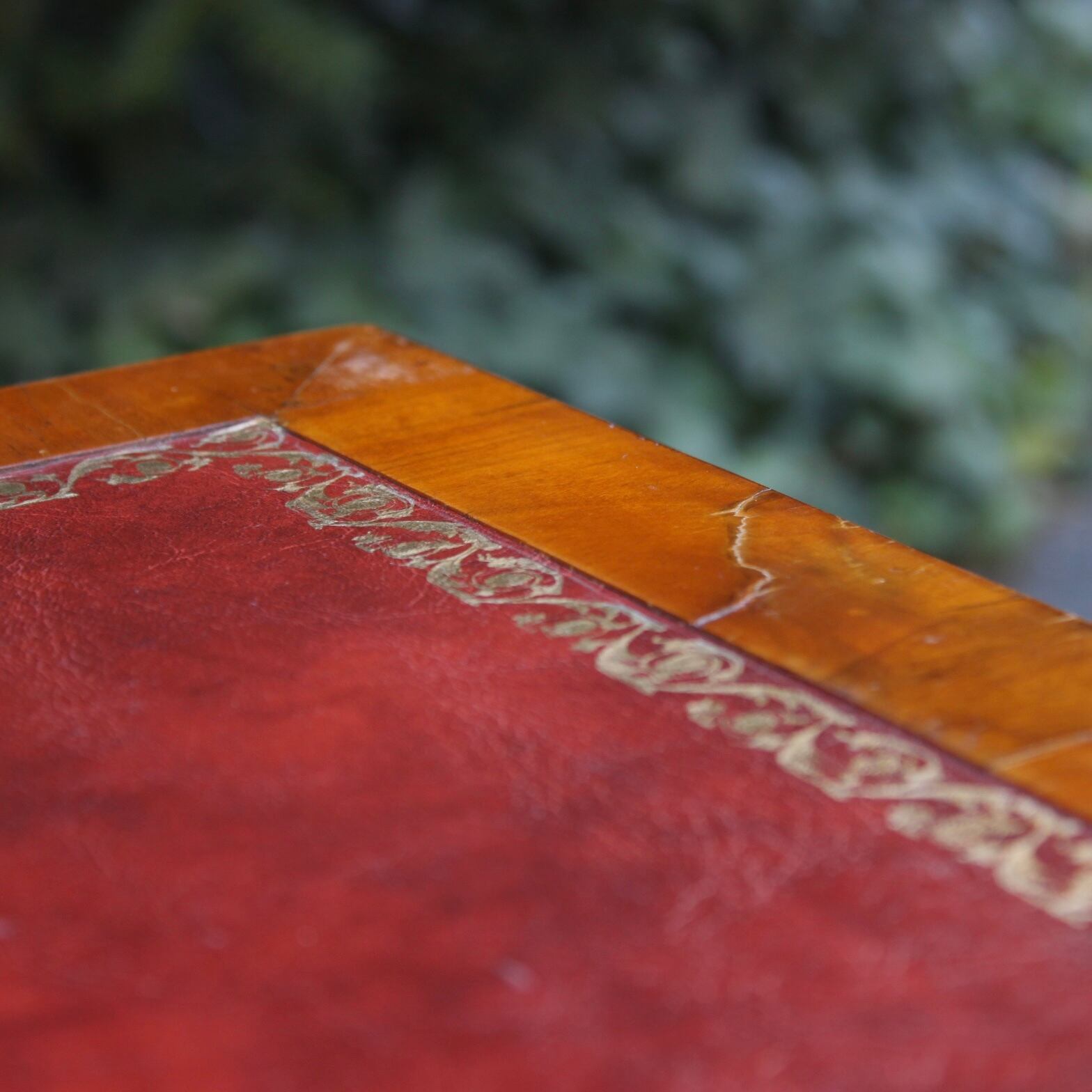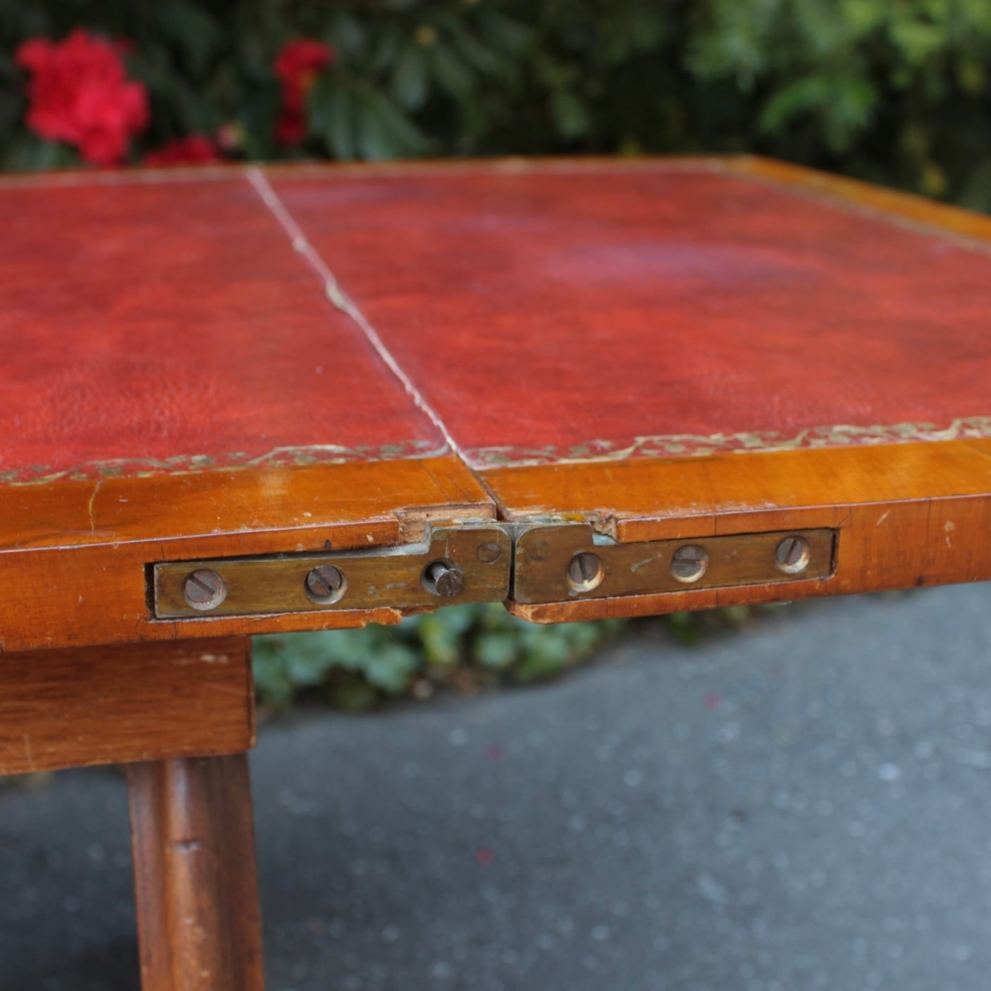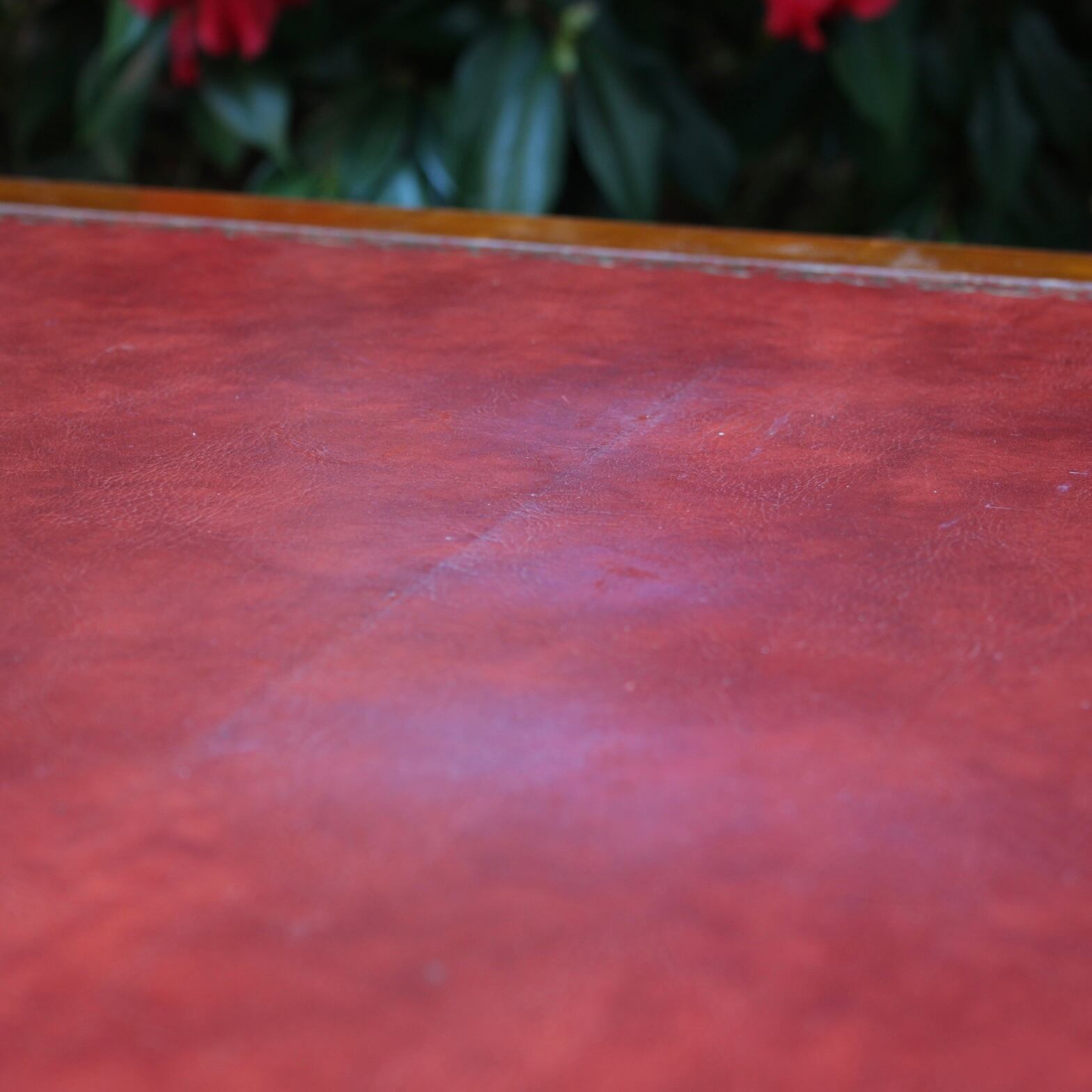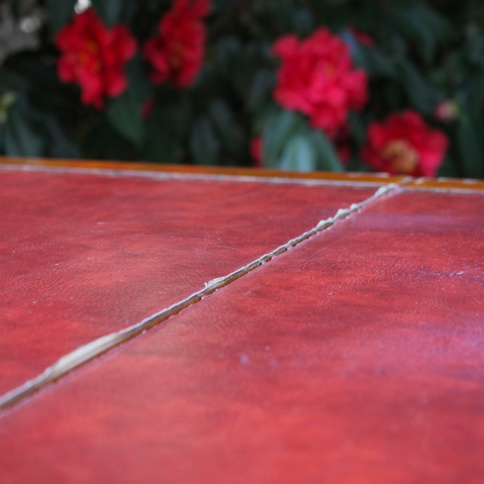 天板の革張り部分に亀裂が見られます。
