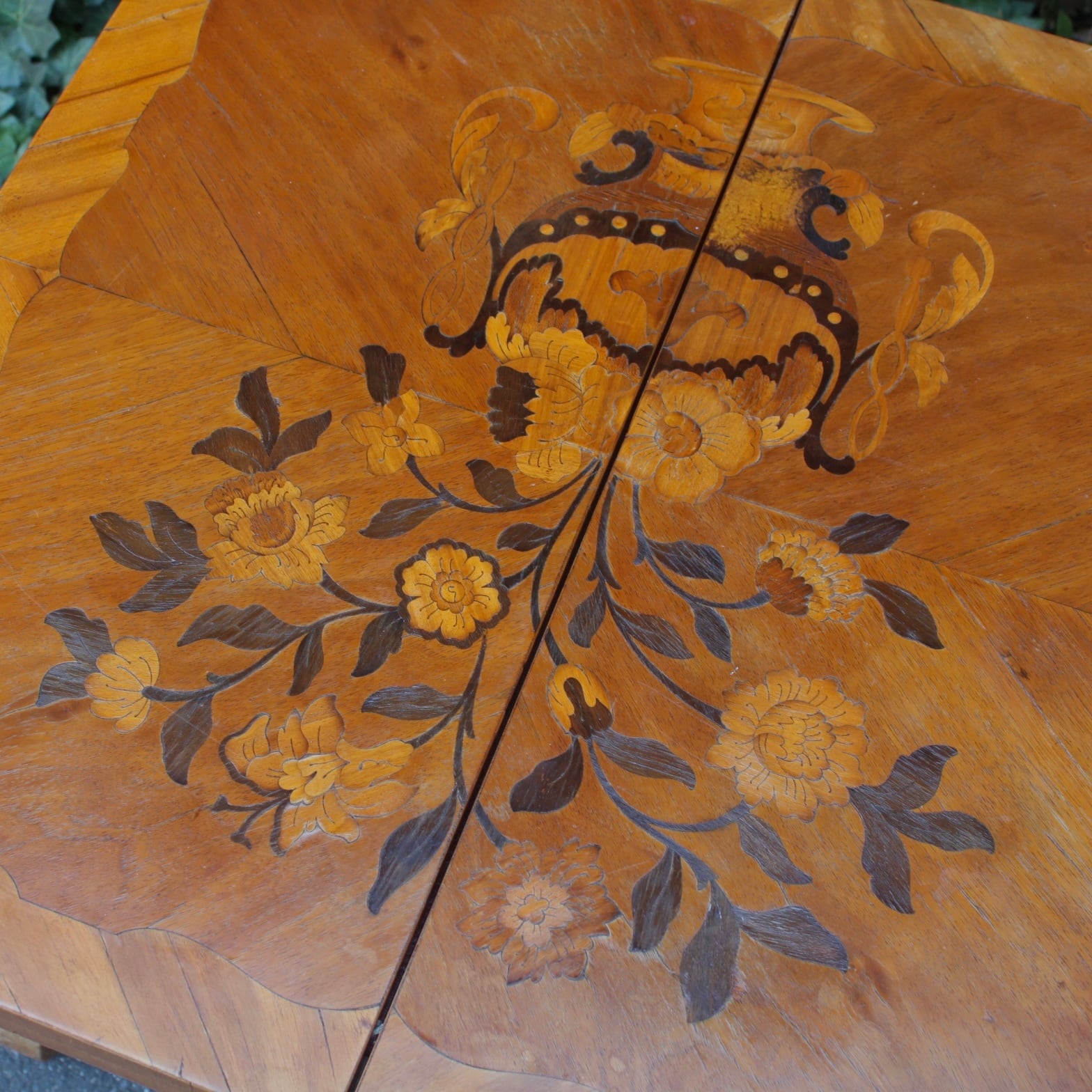ヨーロッパで造られたと思われる象嵌細工のサイドテーブル。