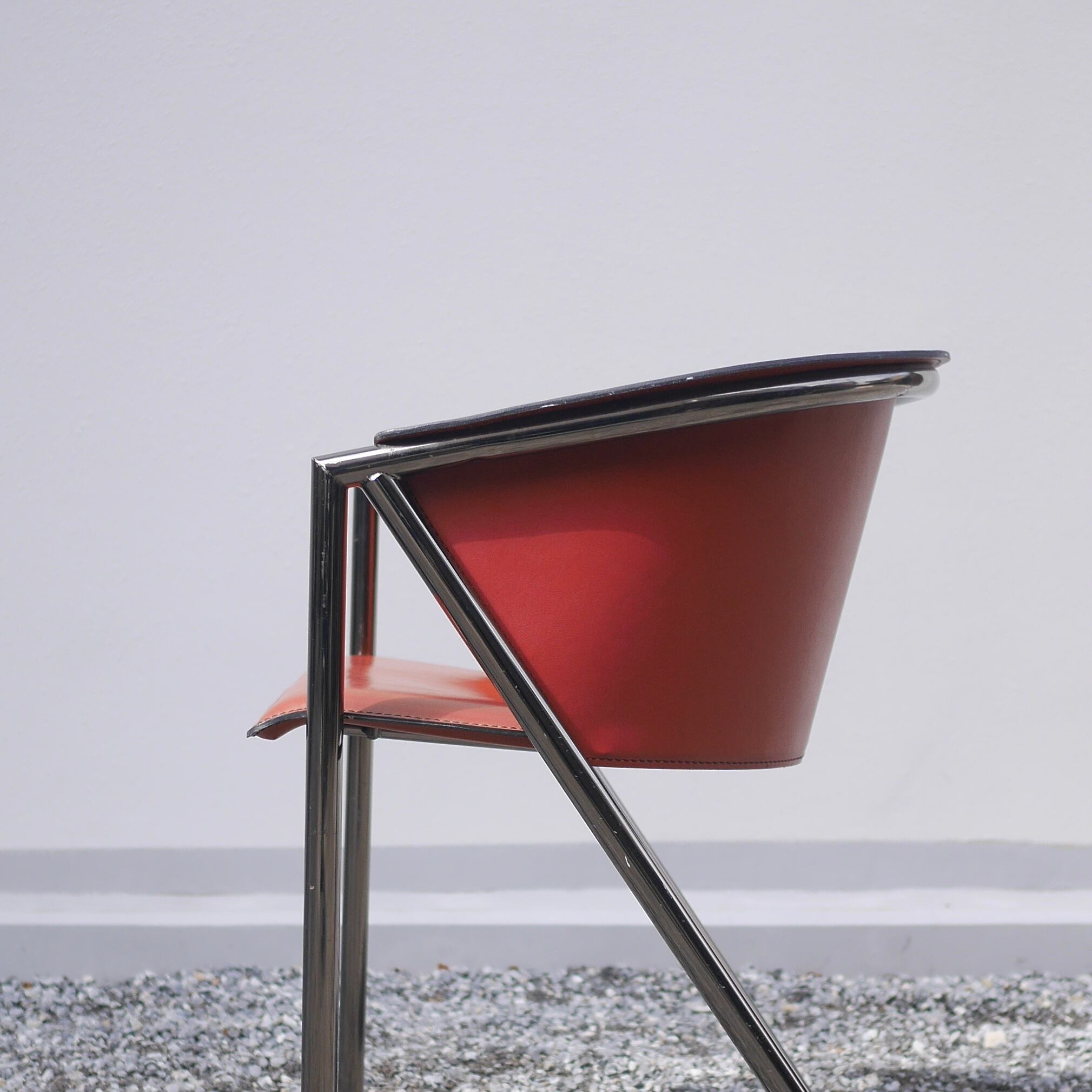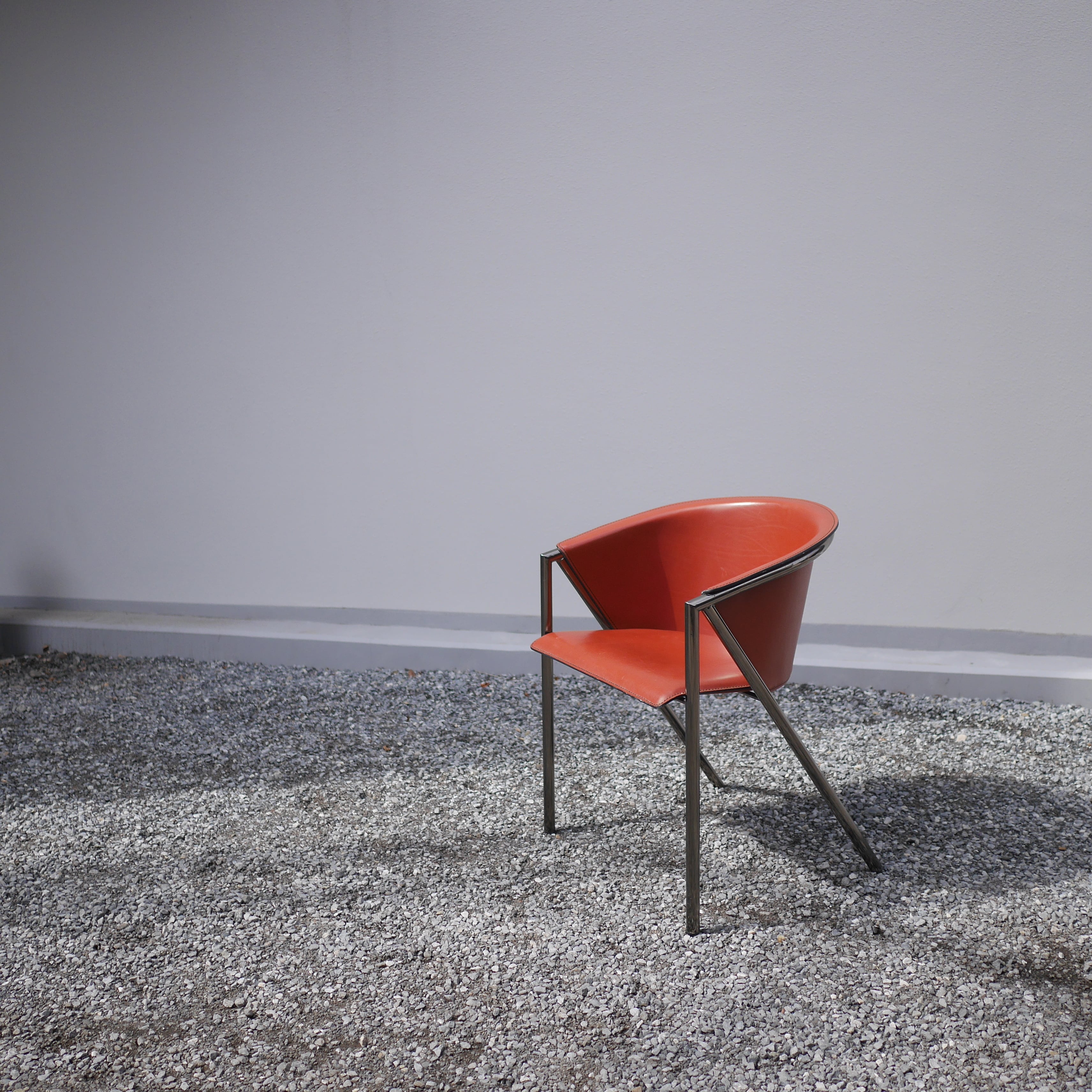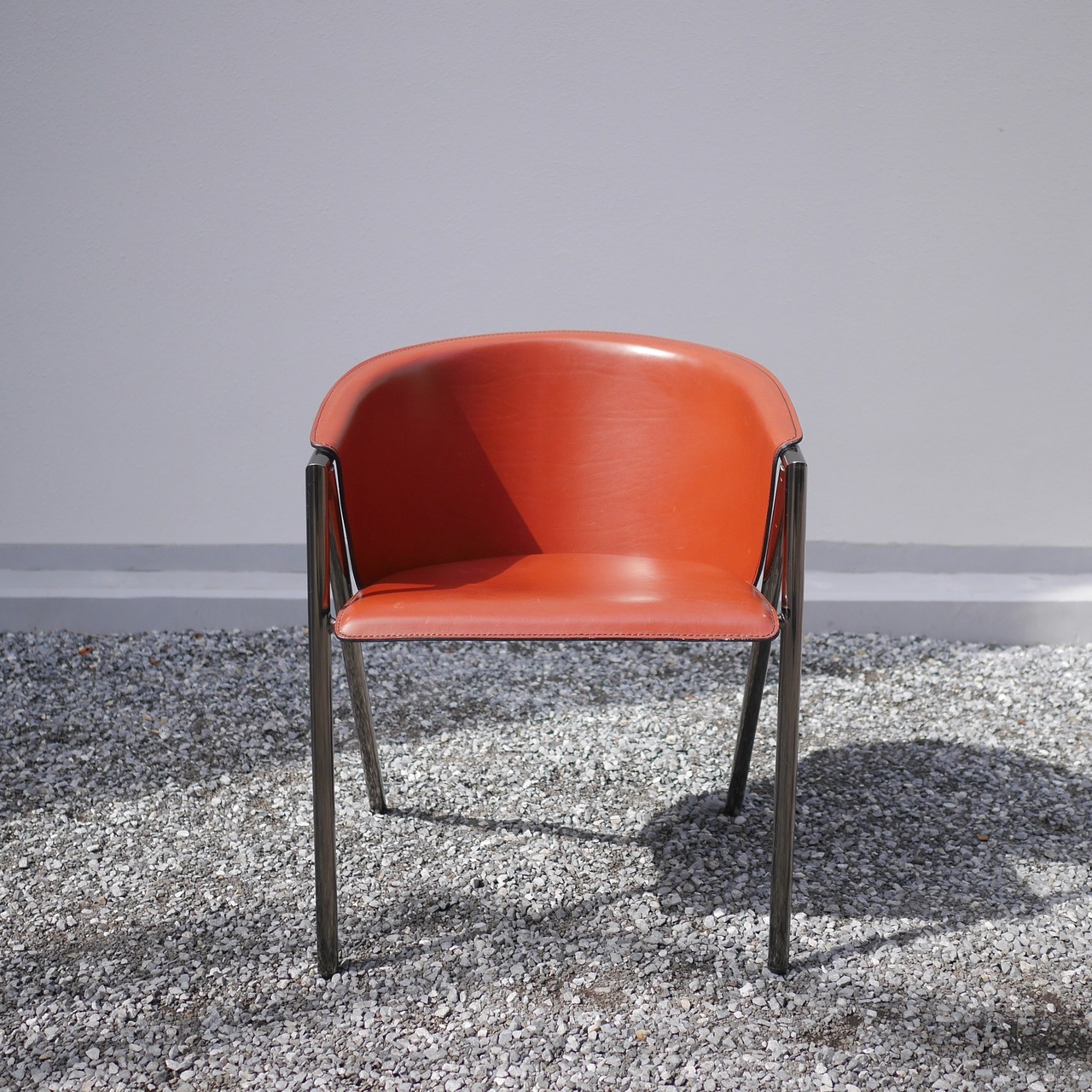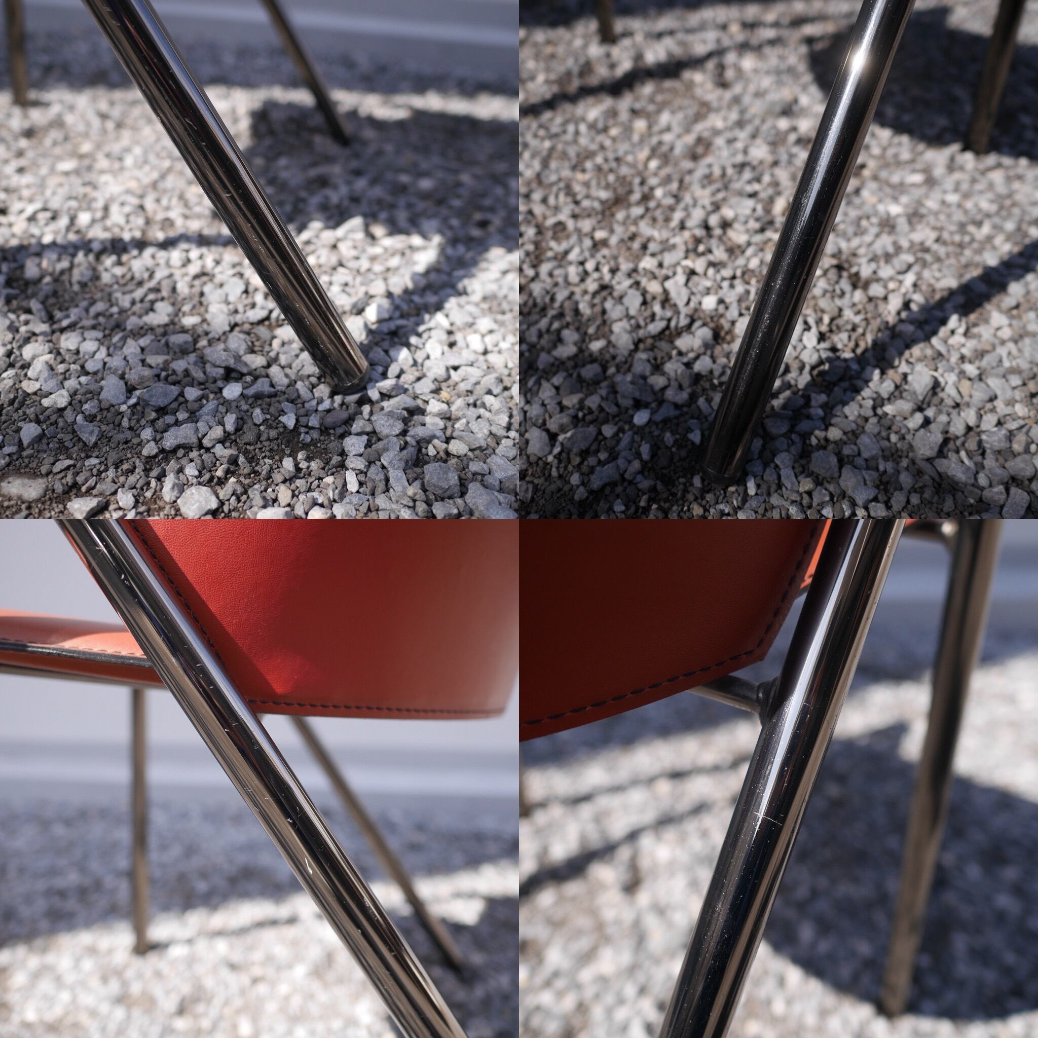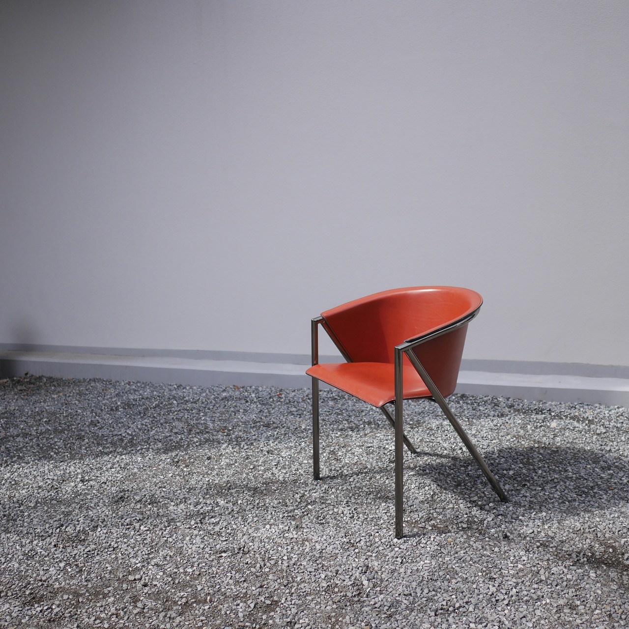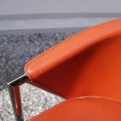 しなやかに湾曲するレザーシートと、直線的なスチールフレーム。