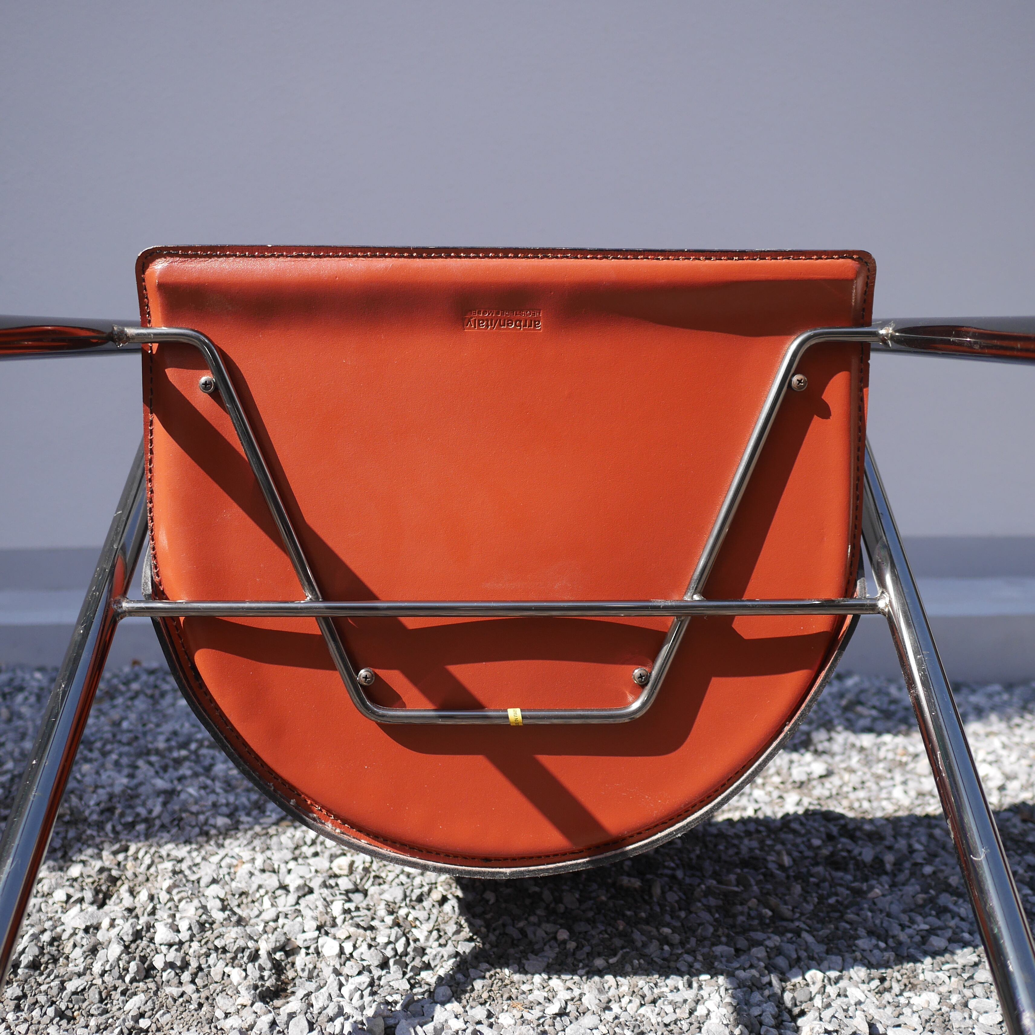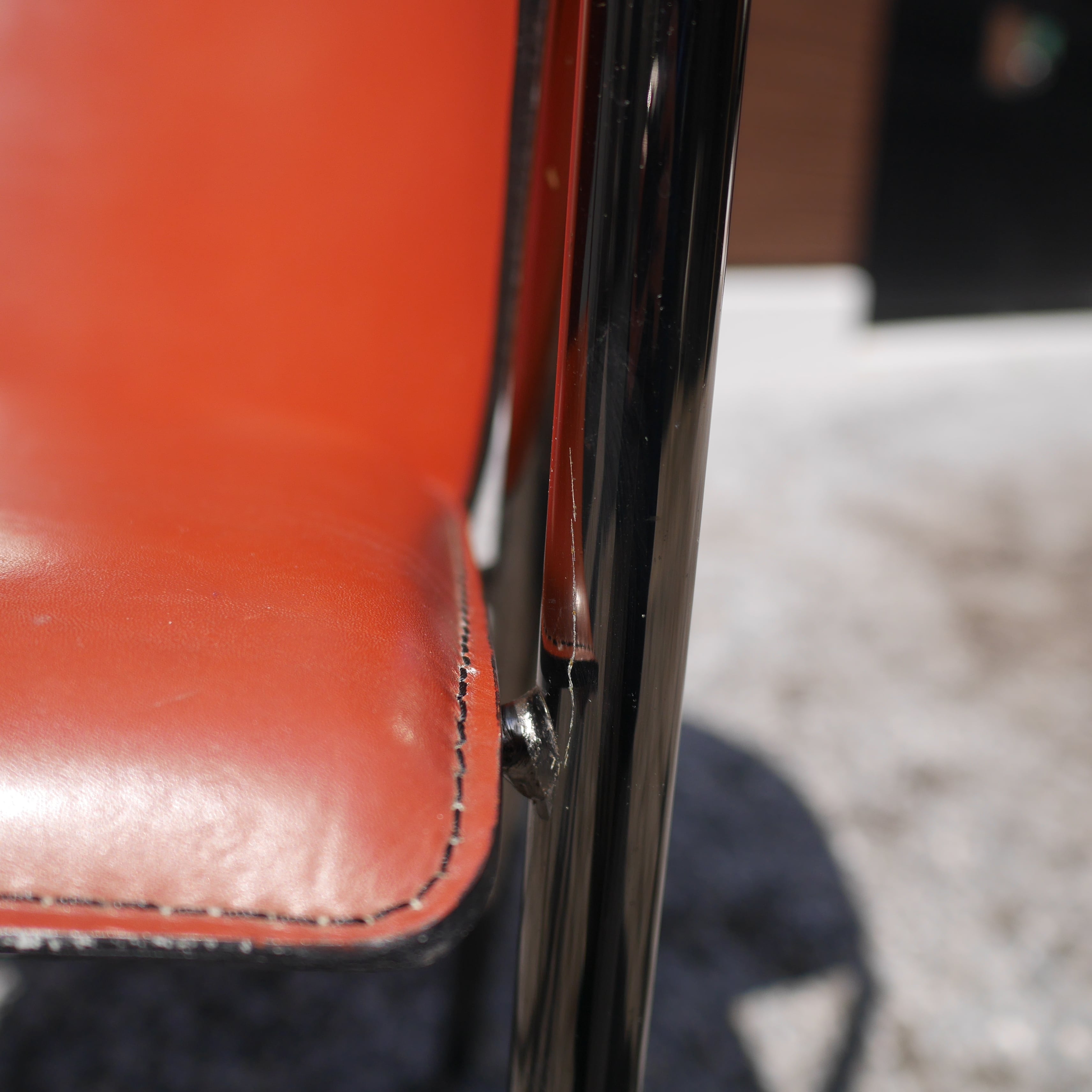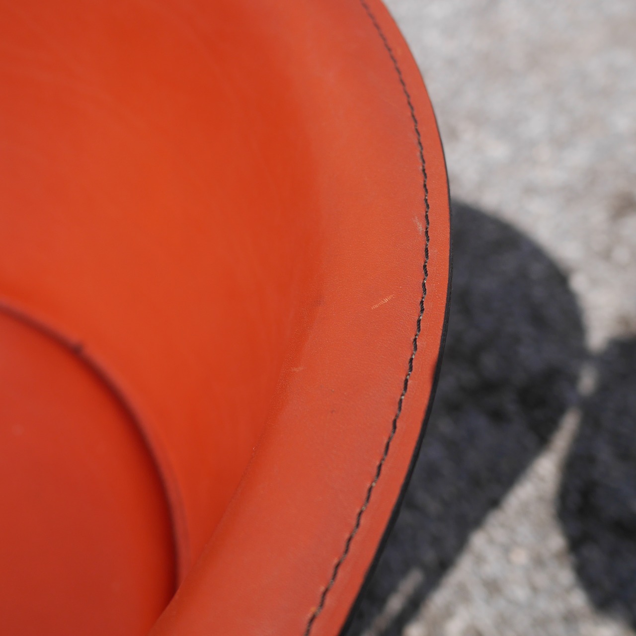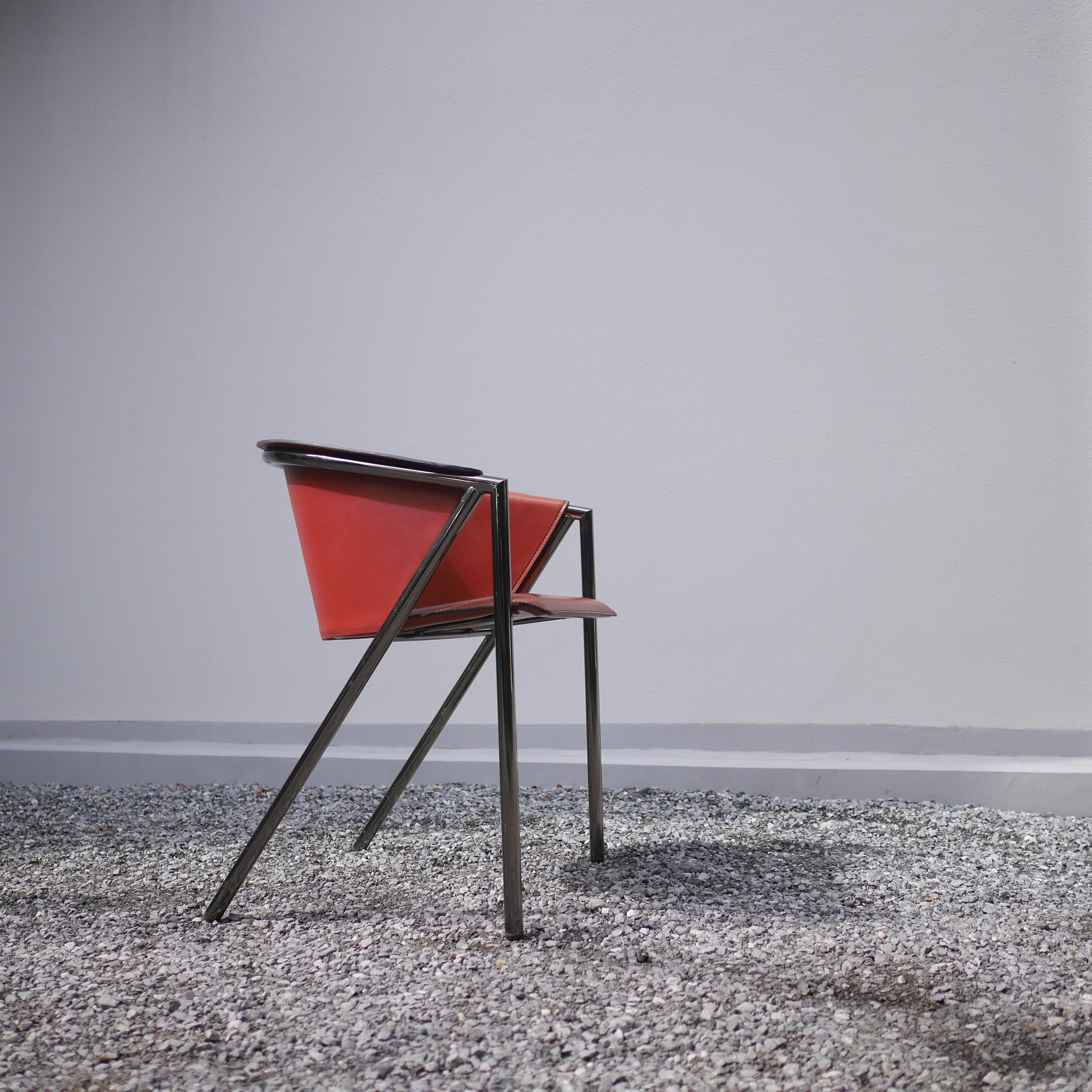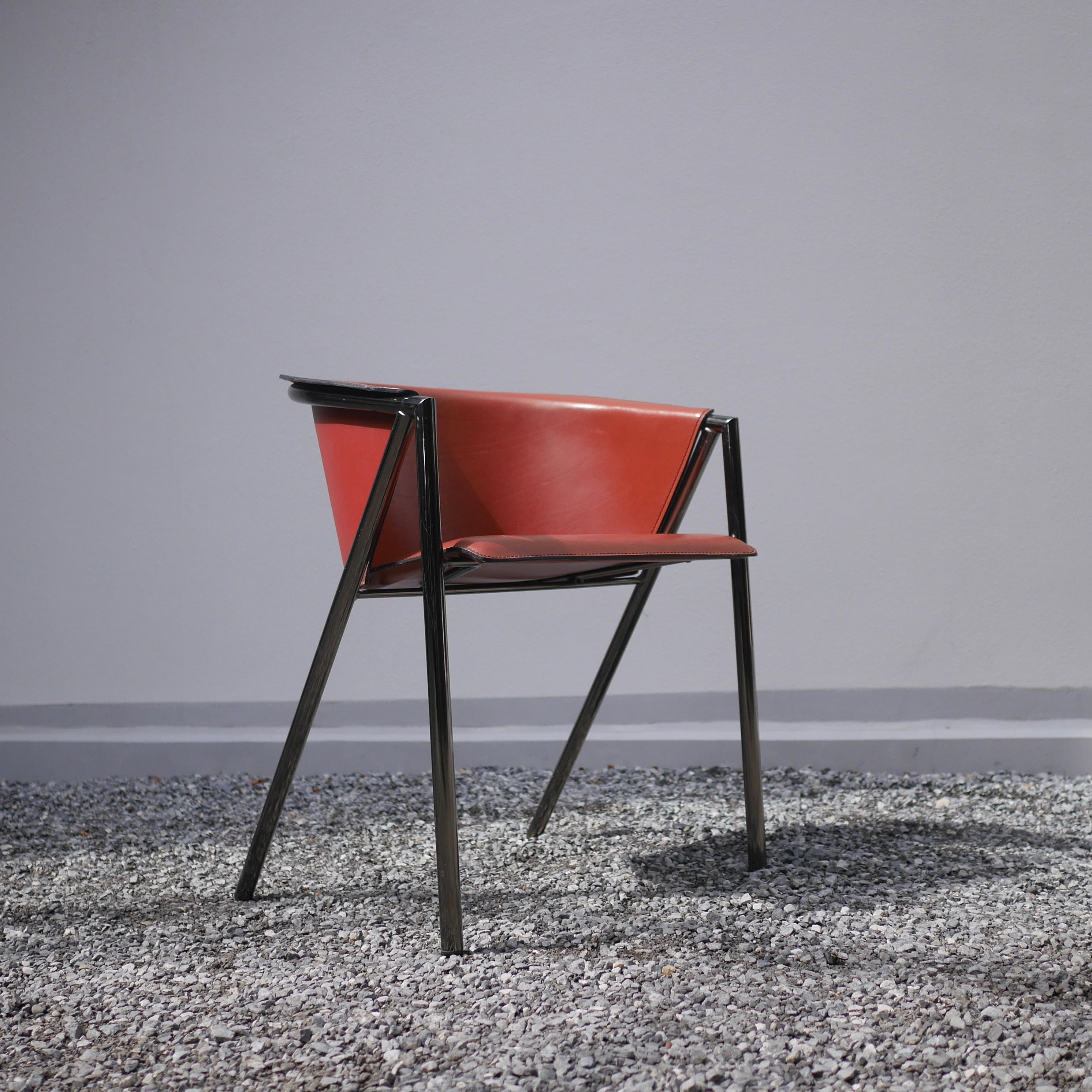 しなやかに湾曲するレザーシートと、直線的なスチールフレーム。