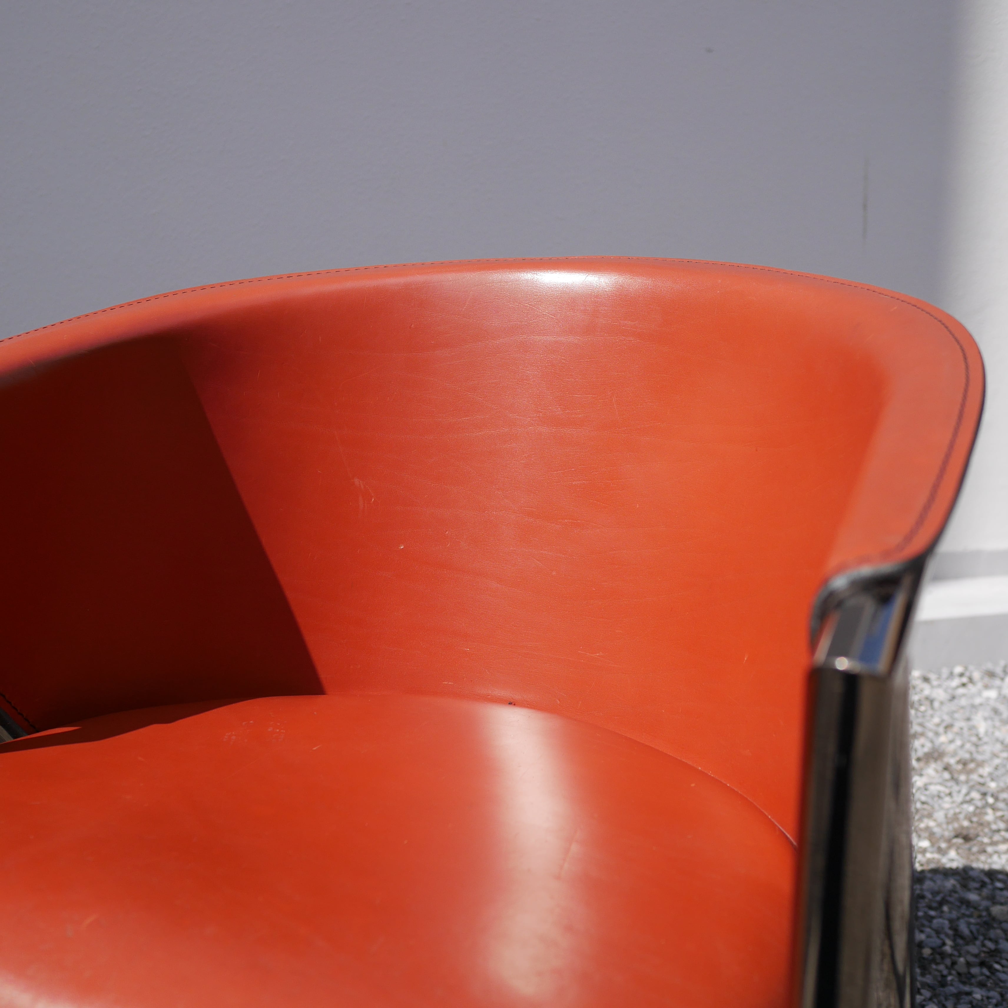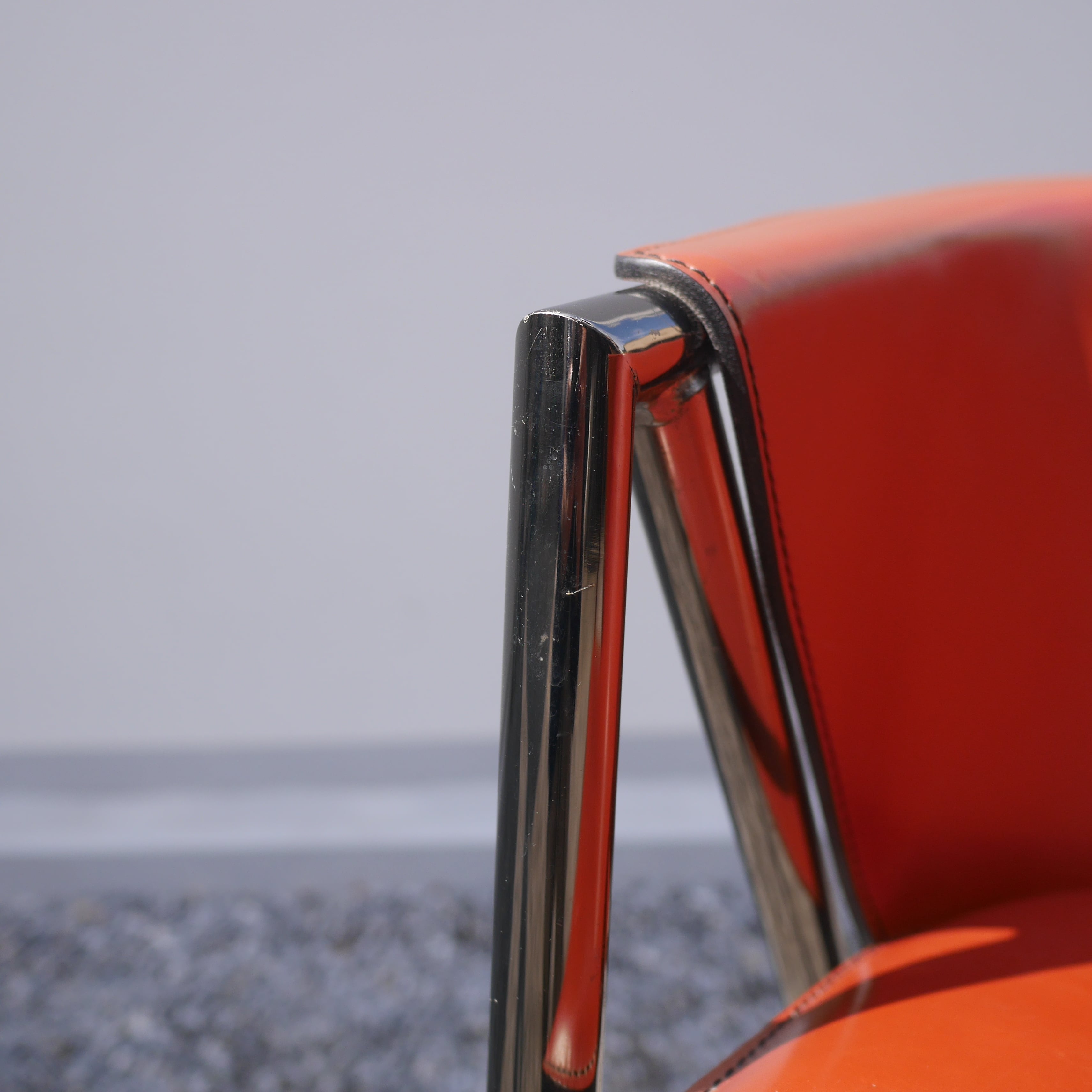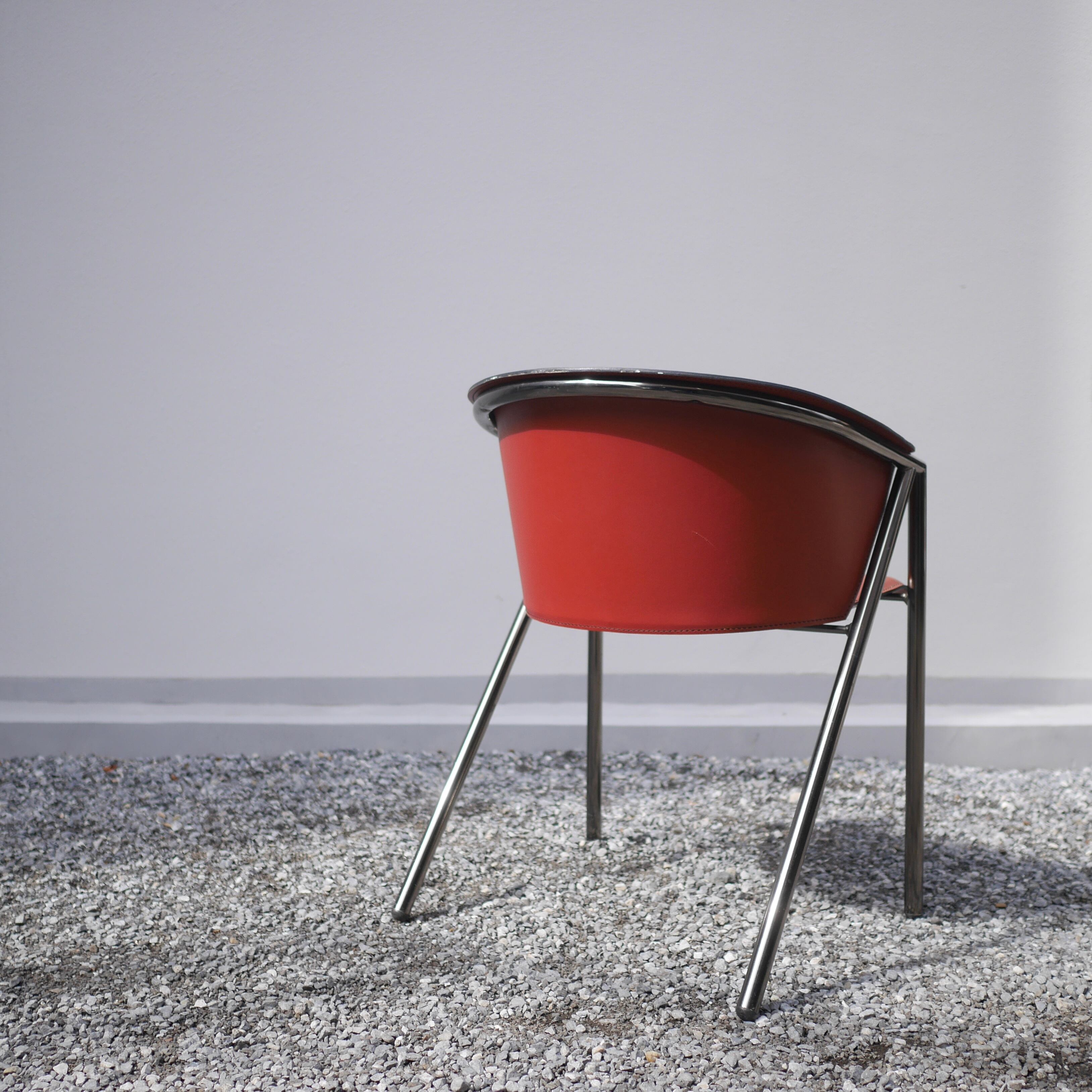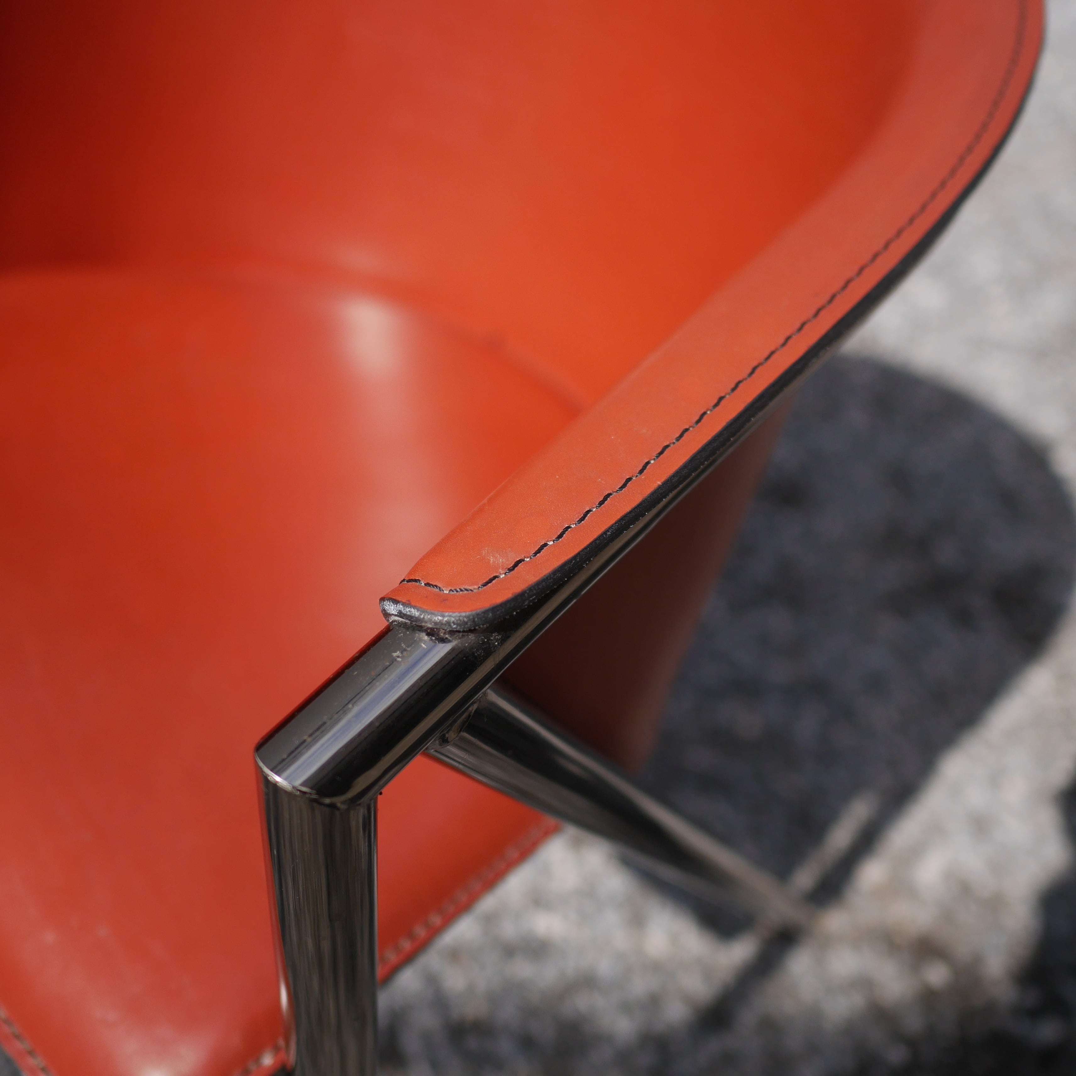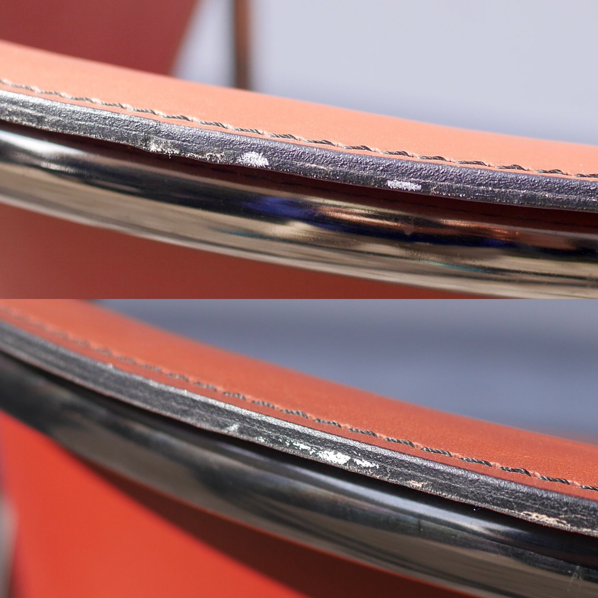 しなやかに湾曲するレザーシートと、直線的なスチールフレーム。