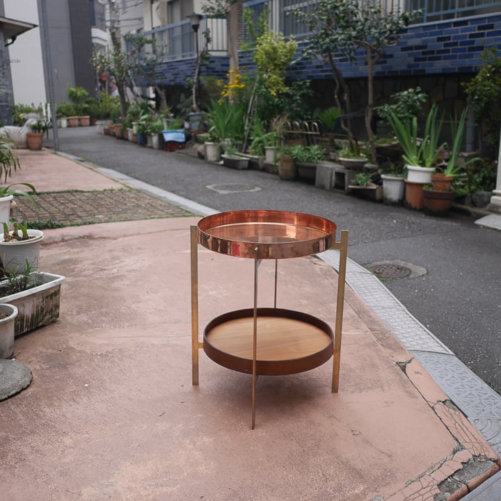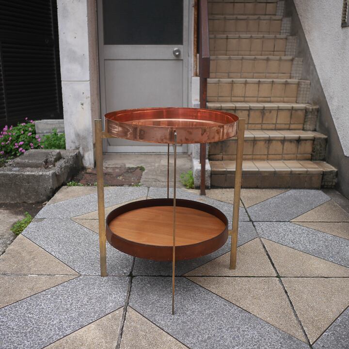 こちらはカッパーと木×革の二段トレイ