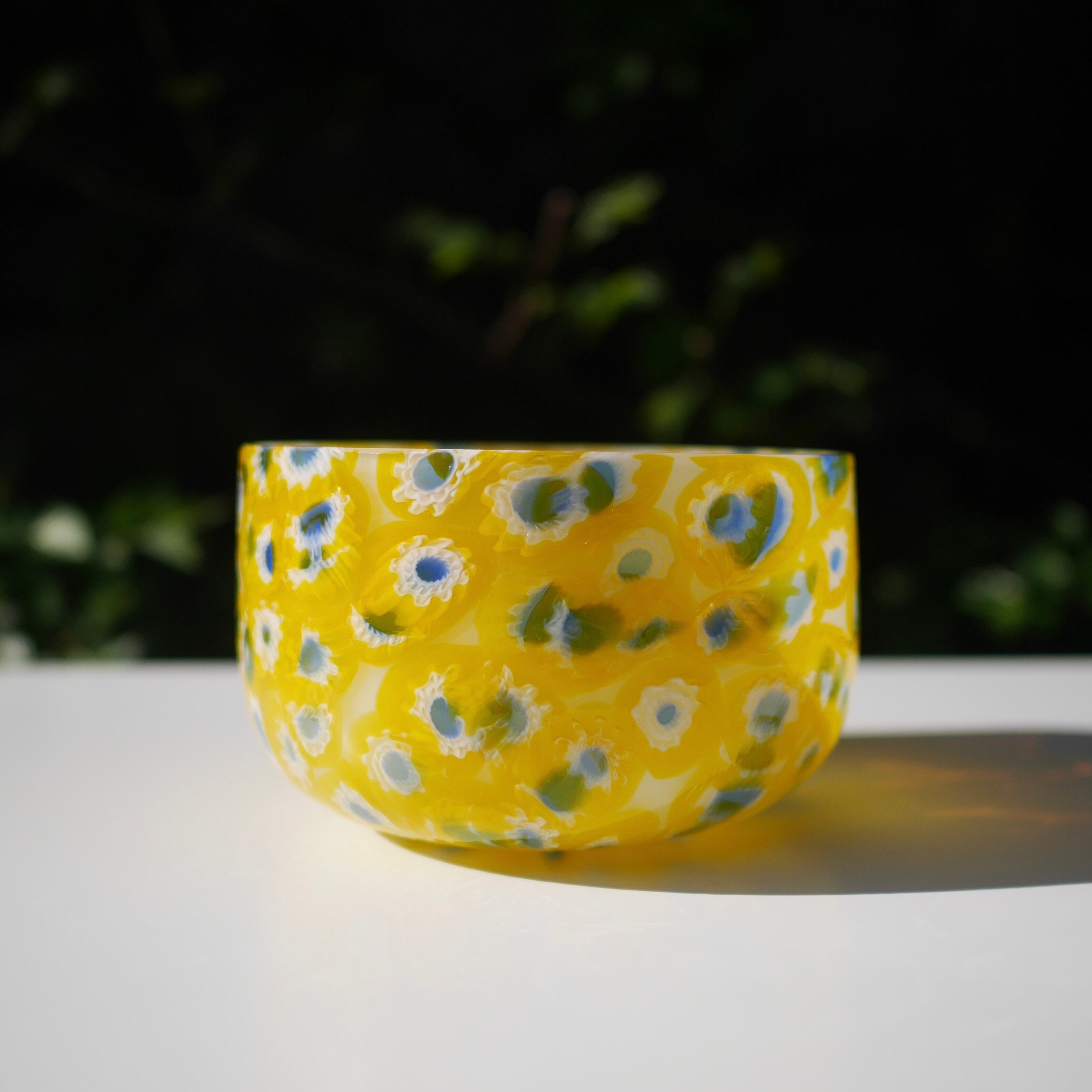 日の光を受けると、イエローをベースにした柔らかな色彩が透け