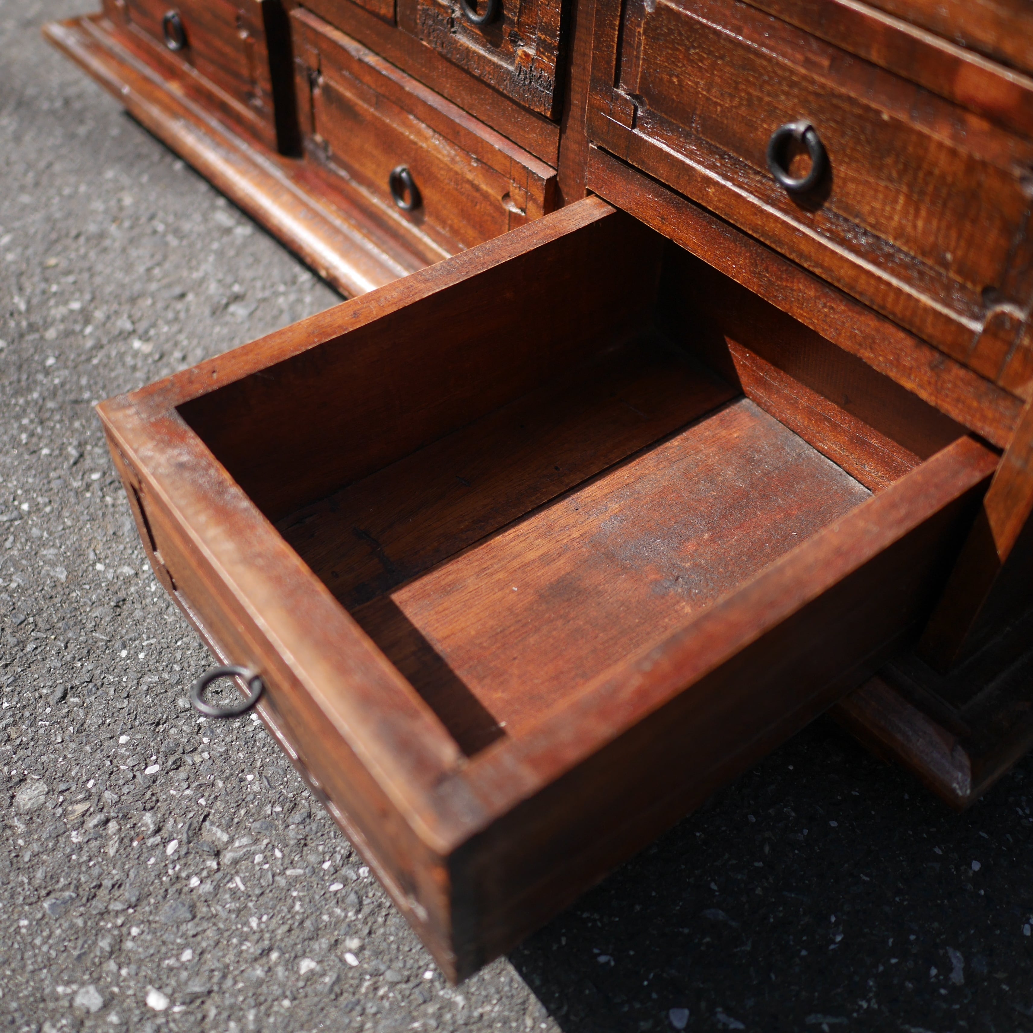 妙に奥行は長いし棚の幅は広いし、実は薬箪笥という用途ではないのかもしれません。