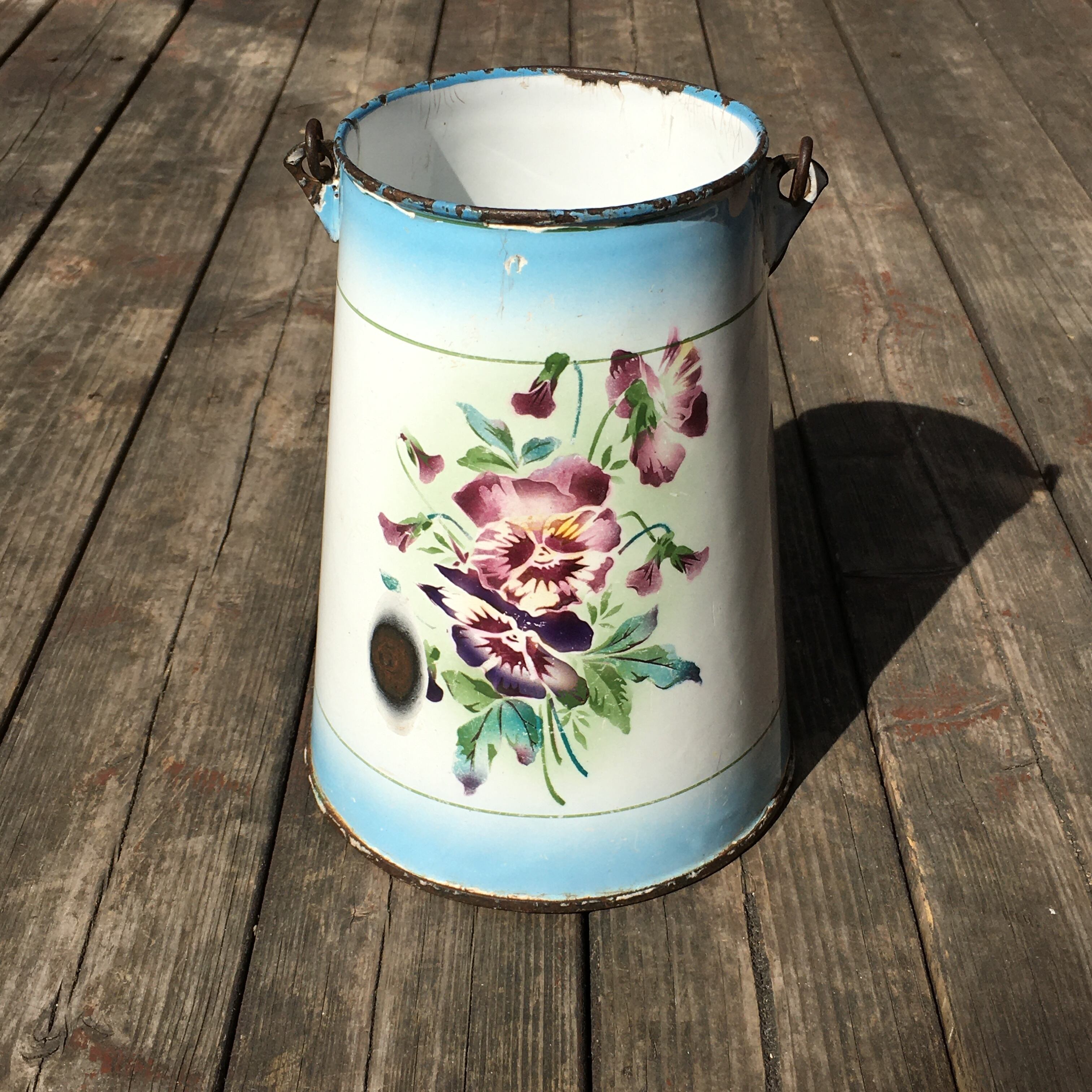 ホーロー特有のサビや剥がれなどありますが、光沢も残った趣のある風合いです。